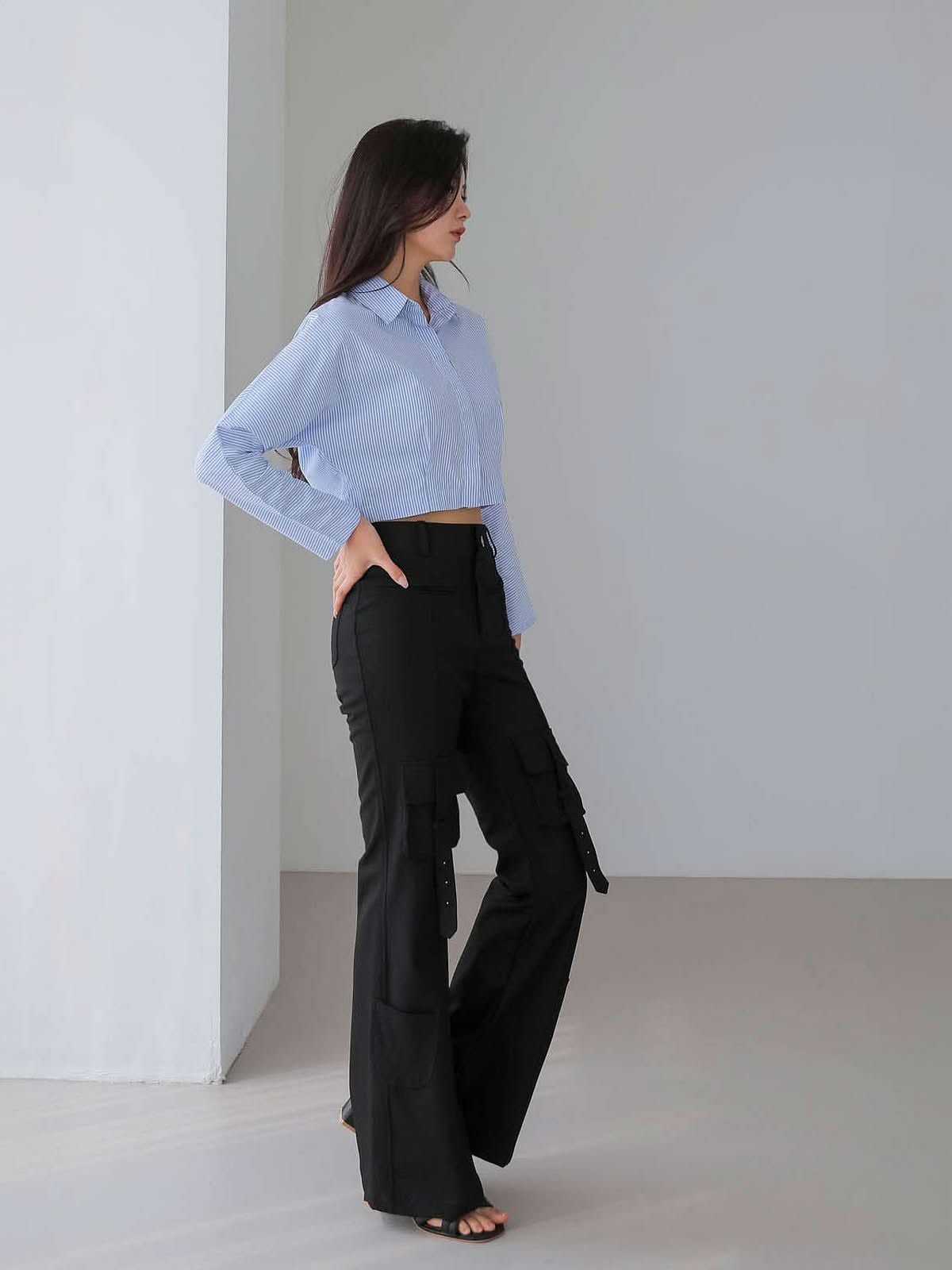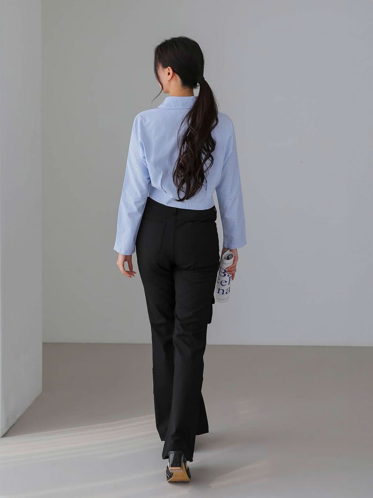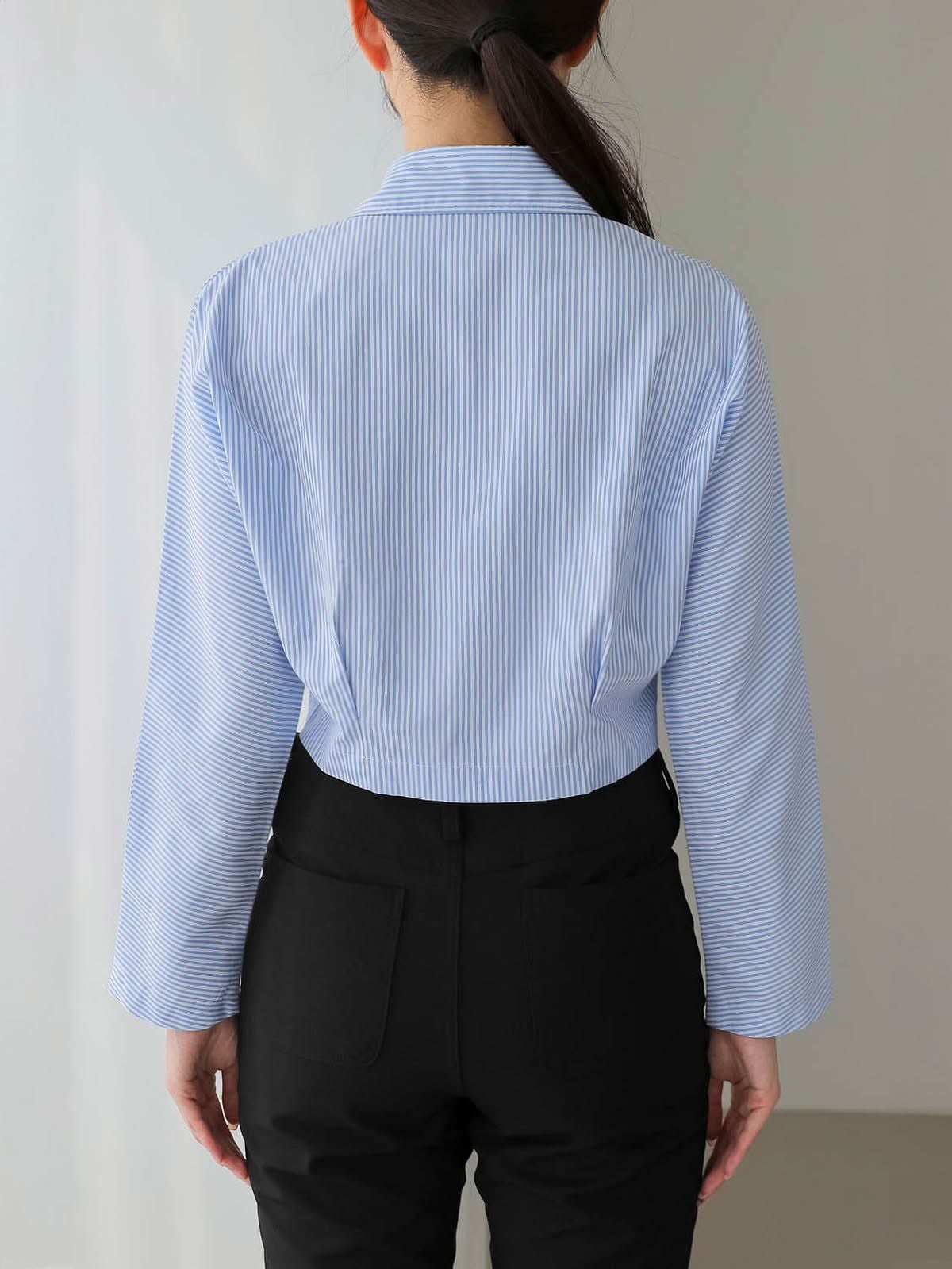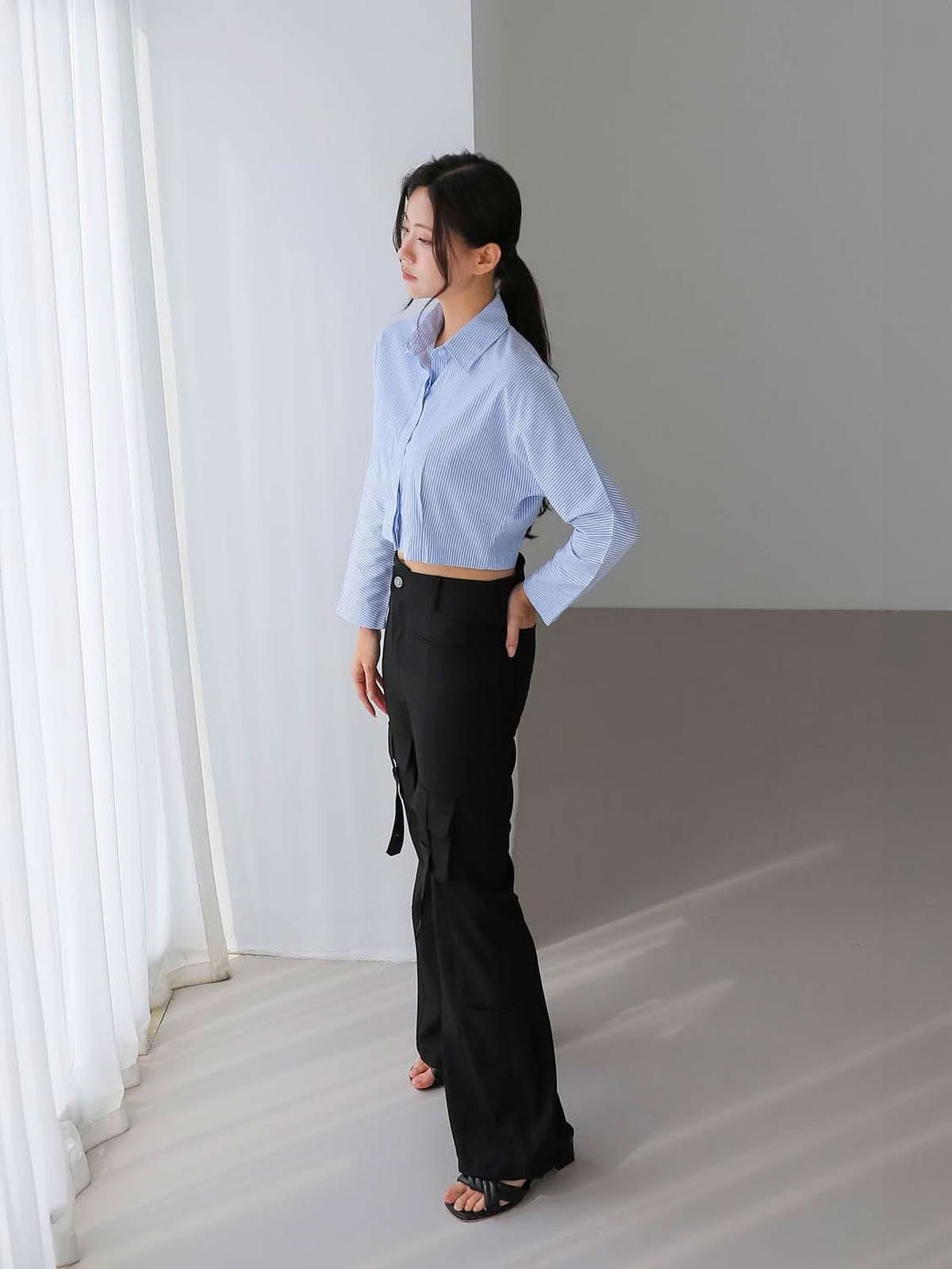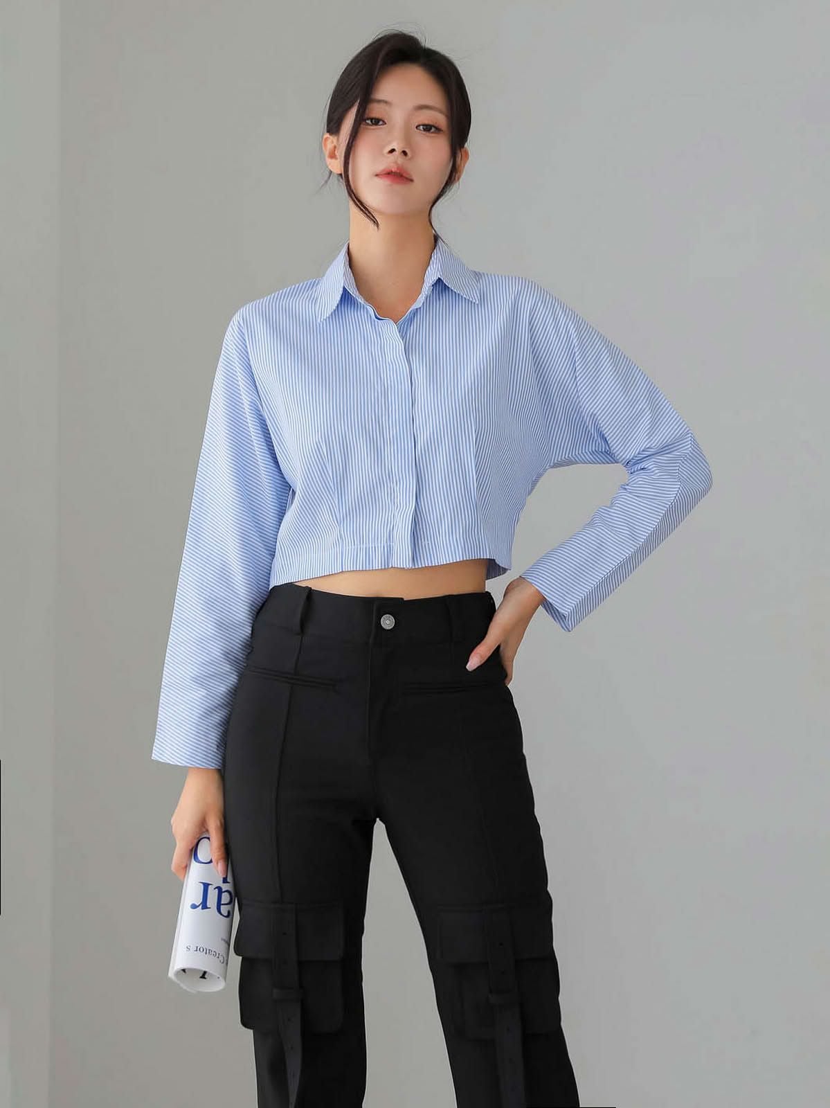 - Áo sơ mi kiểu nữ phom ngắn, tay rớt tạo sự thoải mái.