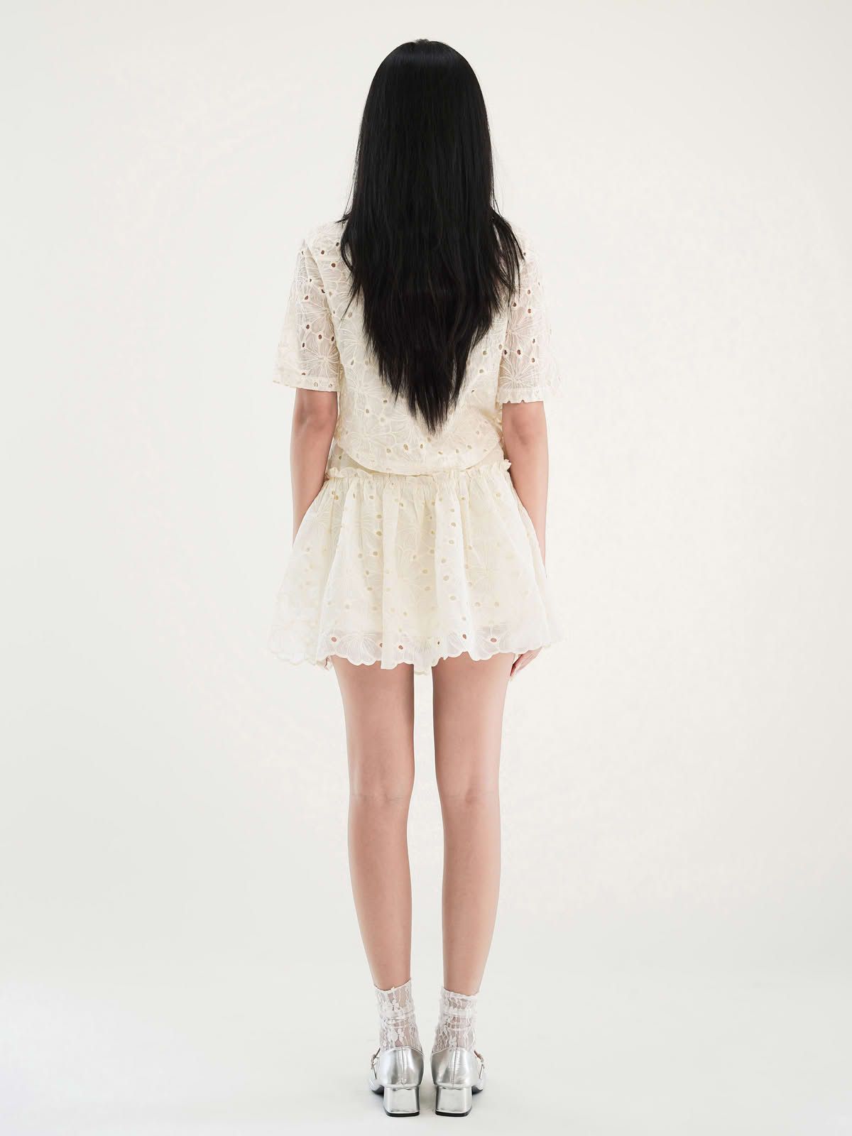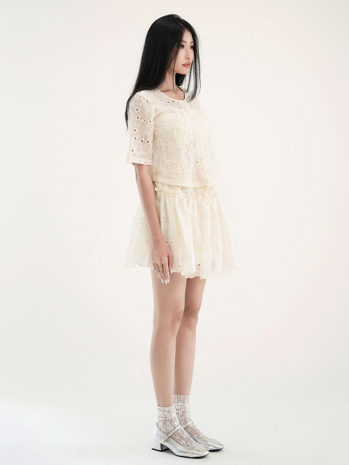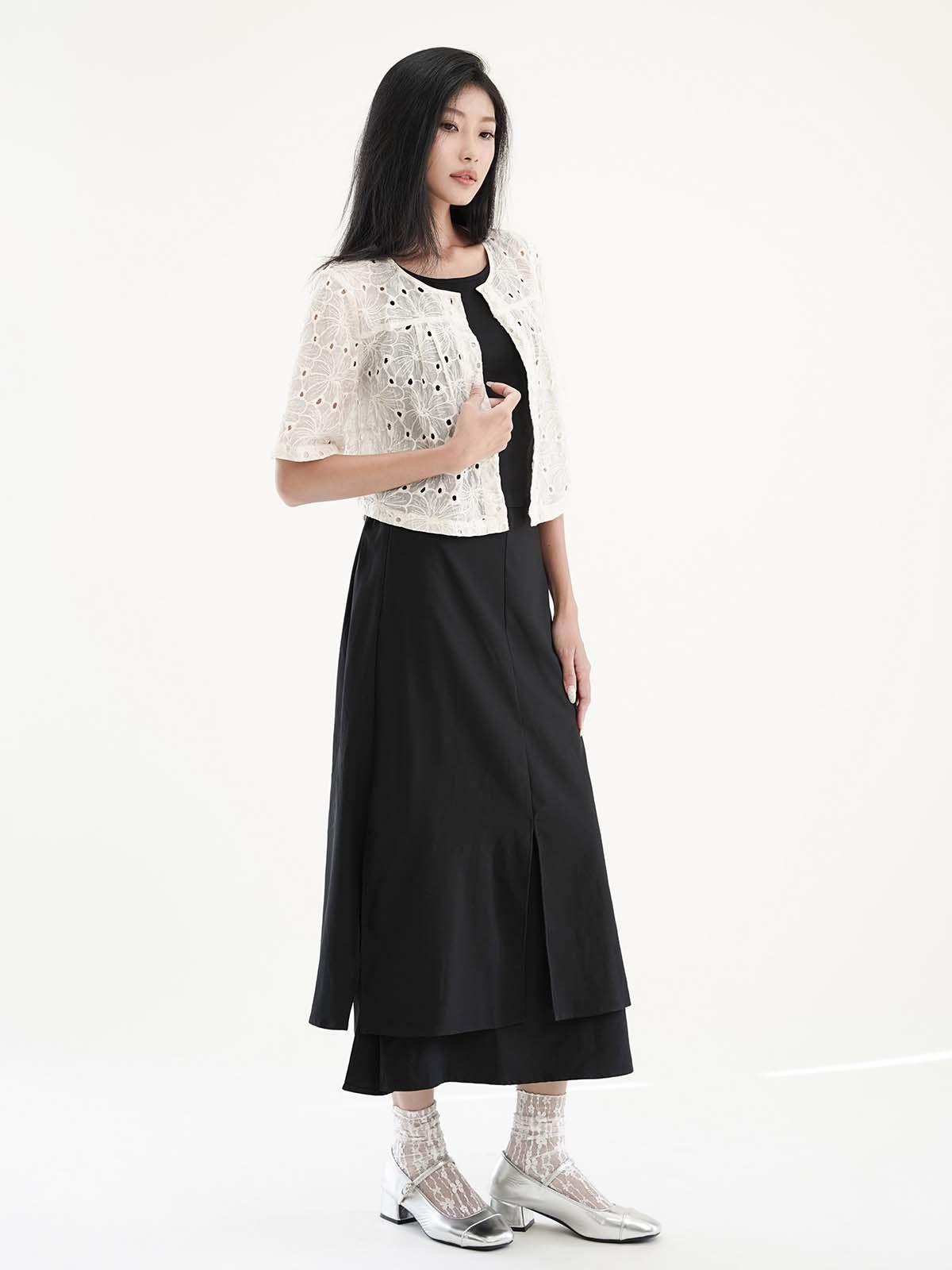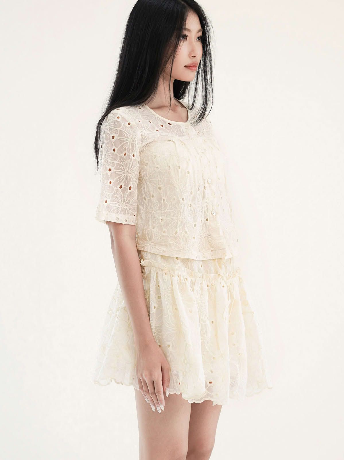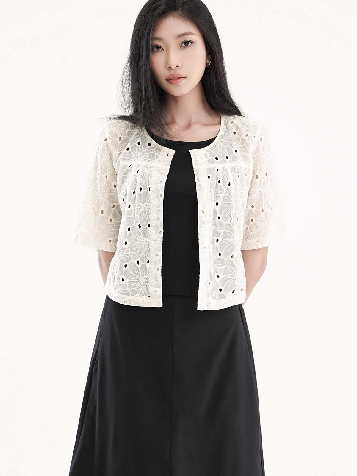 - Áo kiểu vải thêu hoa lỗ, tạo cảm giác nhẹ nhàng, nữ tính và thoáng mát. Tay ngắn, dáng suông. Có thể mặc kèm áo lót ống bên trong, hoặc có thể làm áo khoác nhẹ bên ngoài.