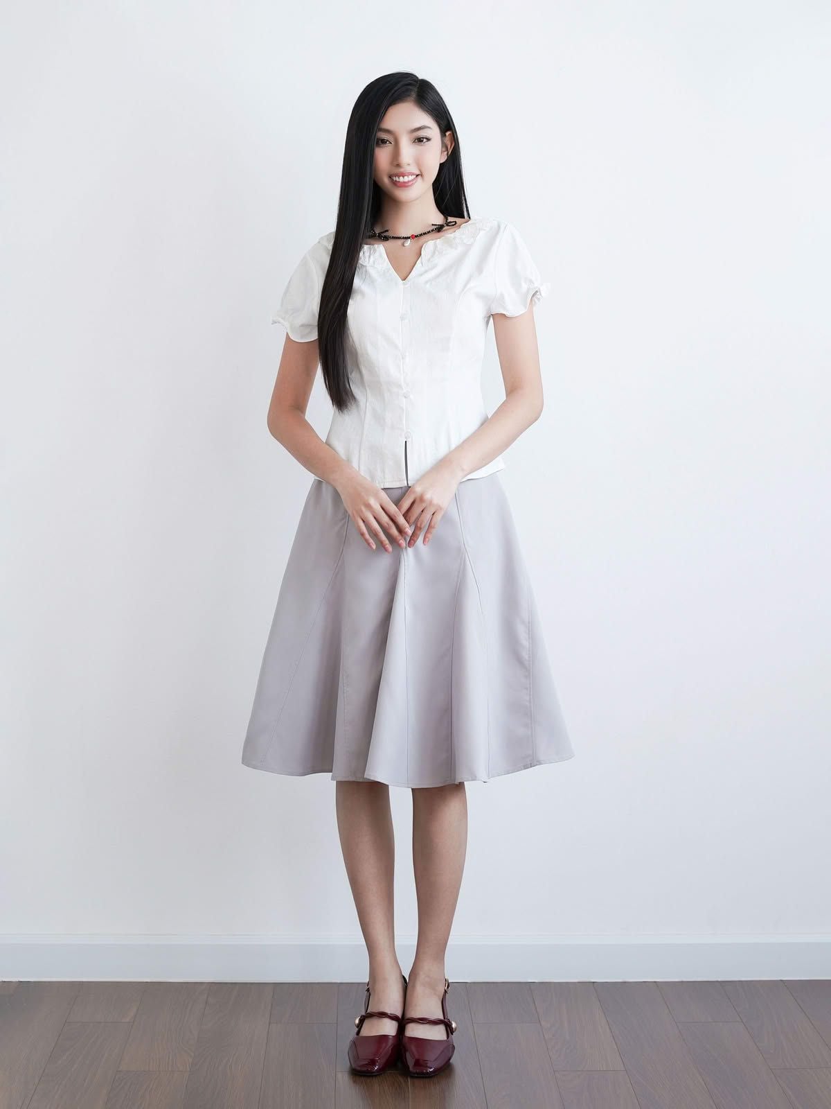 Thanh lịch, nữ tính, dễ phối cùng chân váy xoè, quần jean hoặc quần âu.