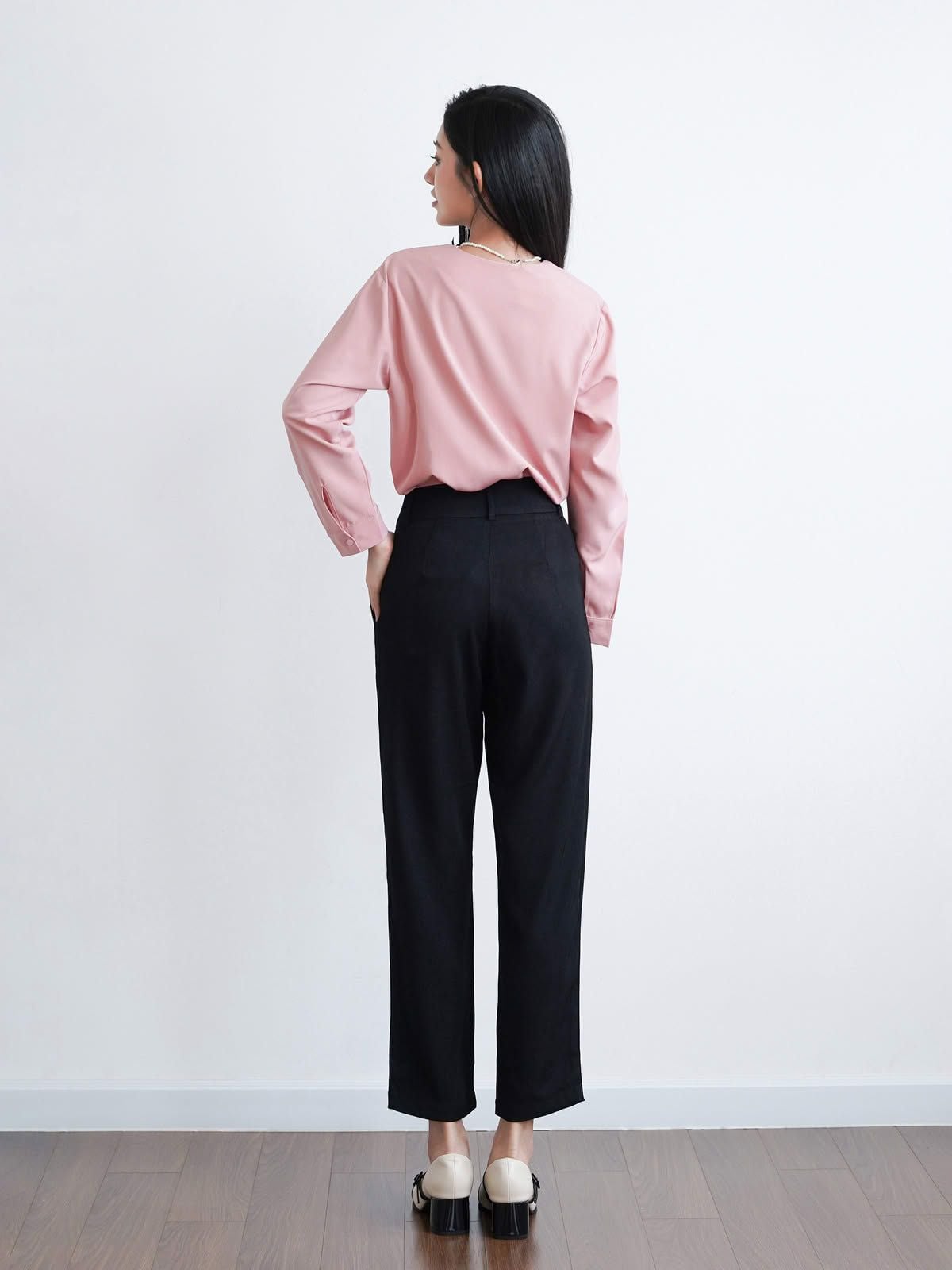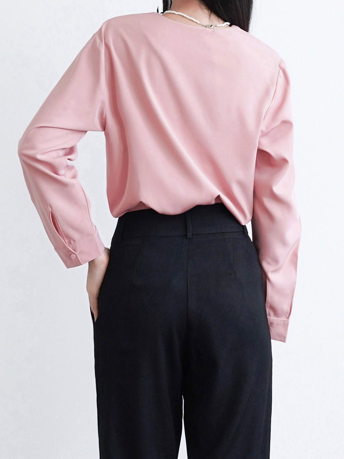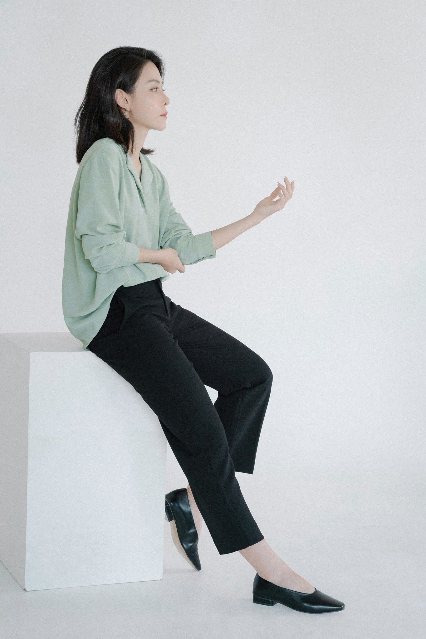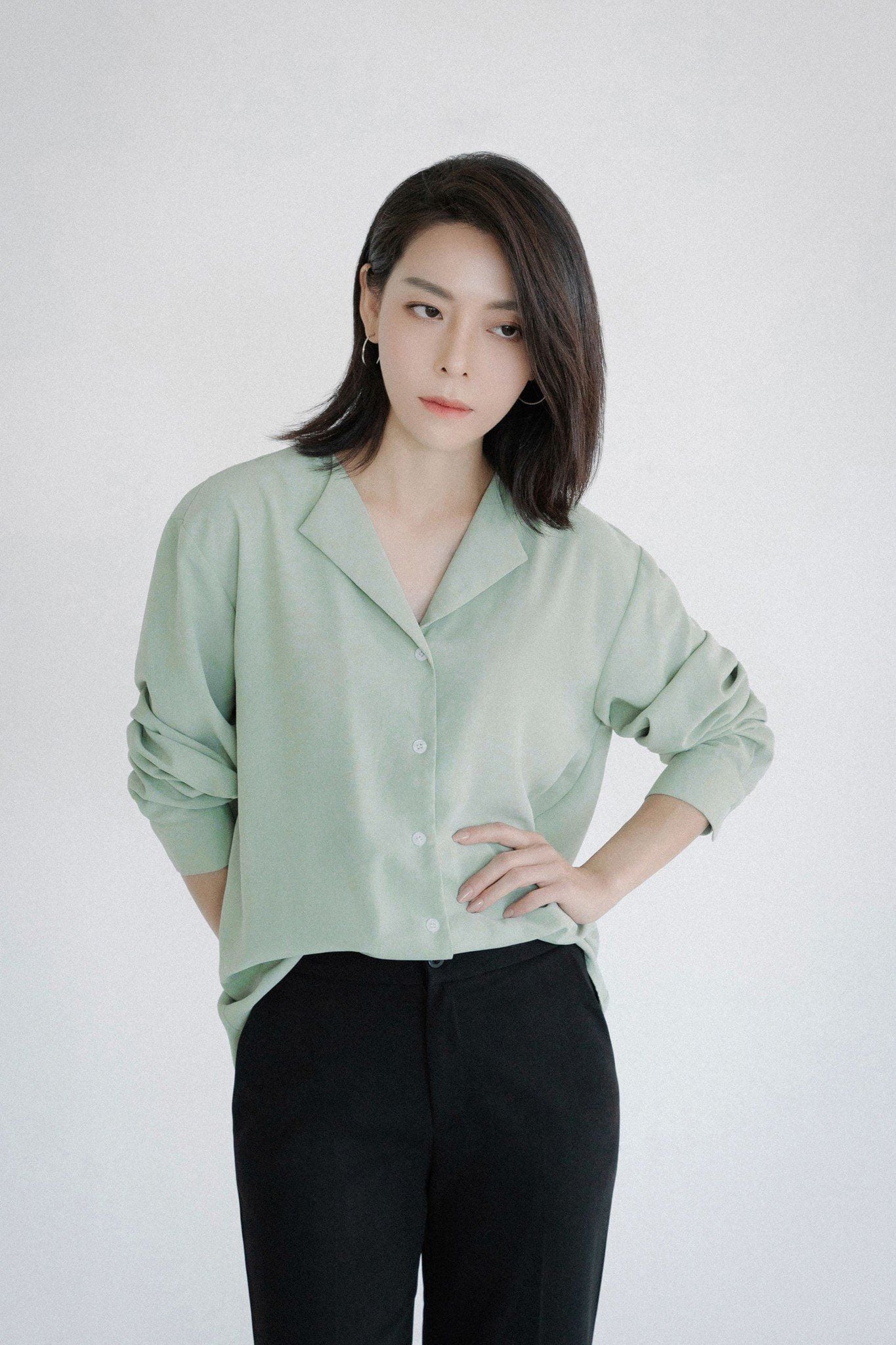 - Áo kiểu nữ cổ lật, chất vải dày dặn, không có độ co giãn.