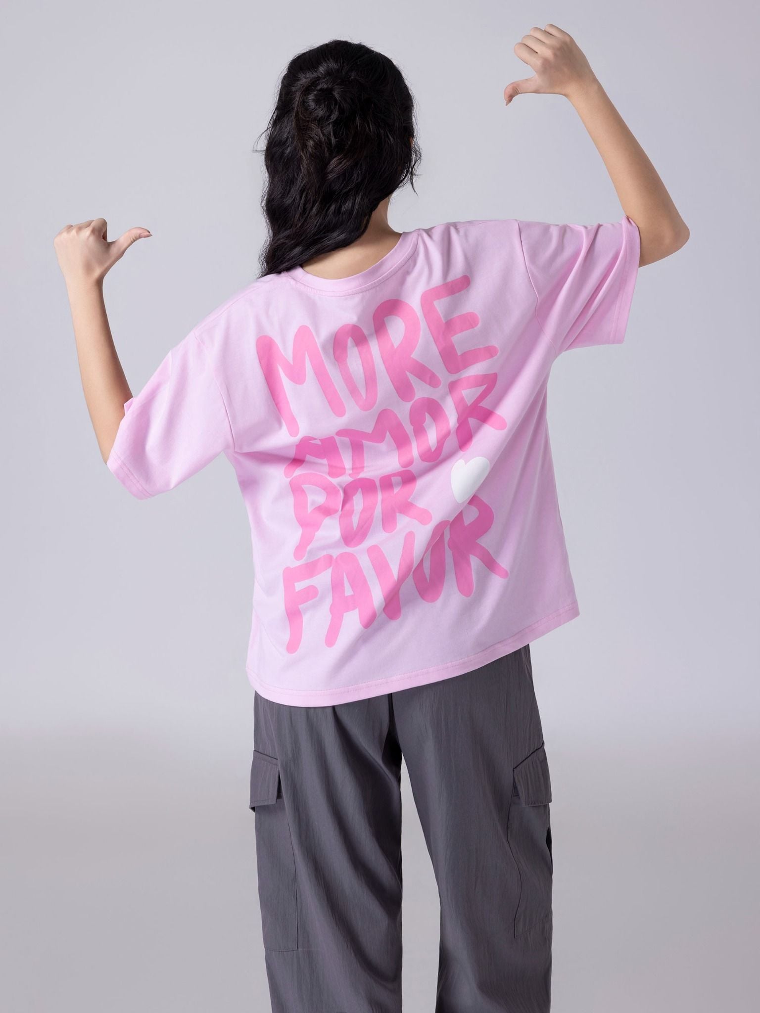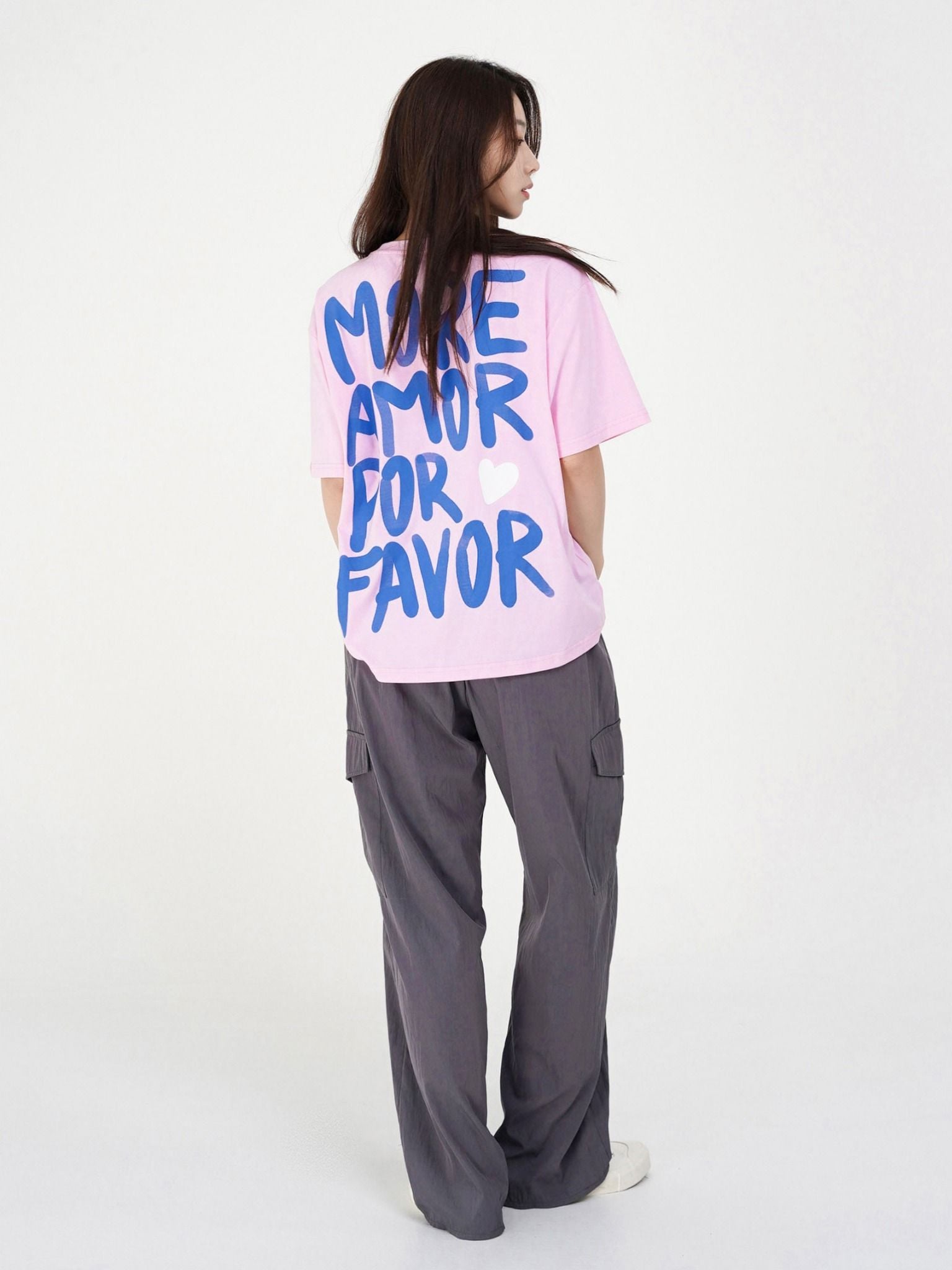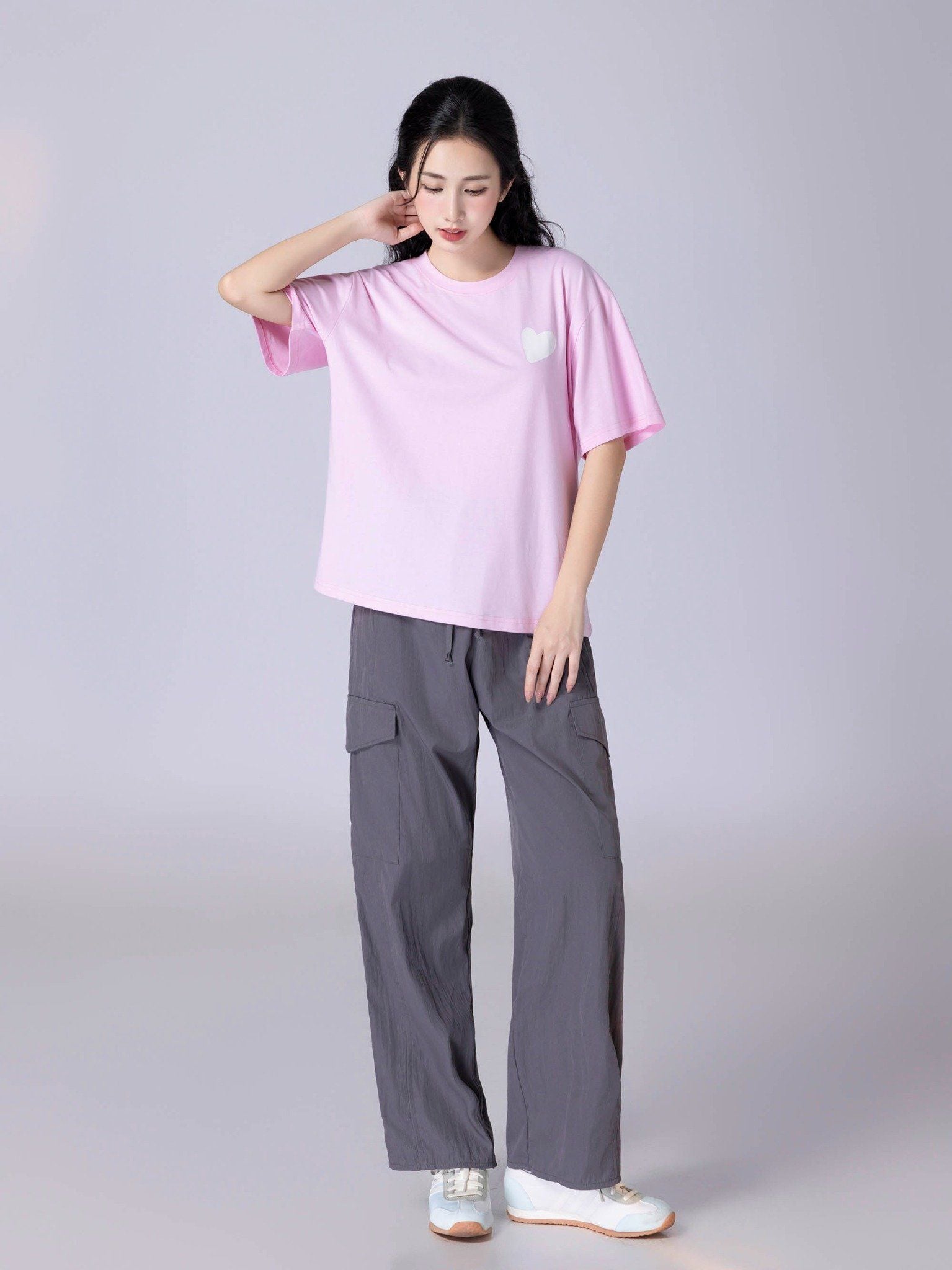 - Áo thun nữ phom rộng in ký tự, chất vải có độ co giãn vừa phải.