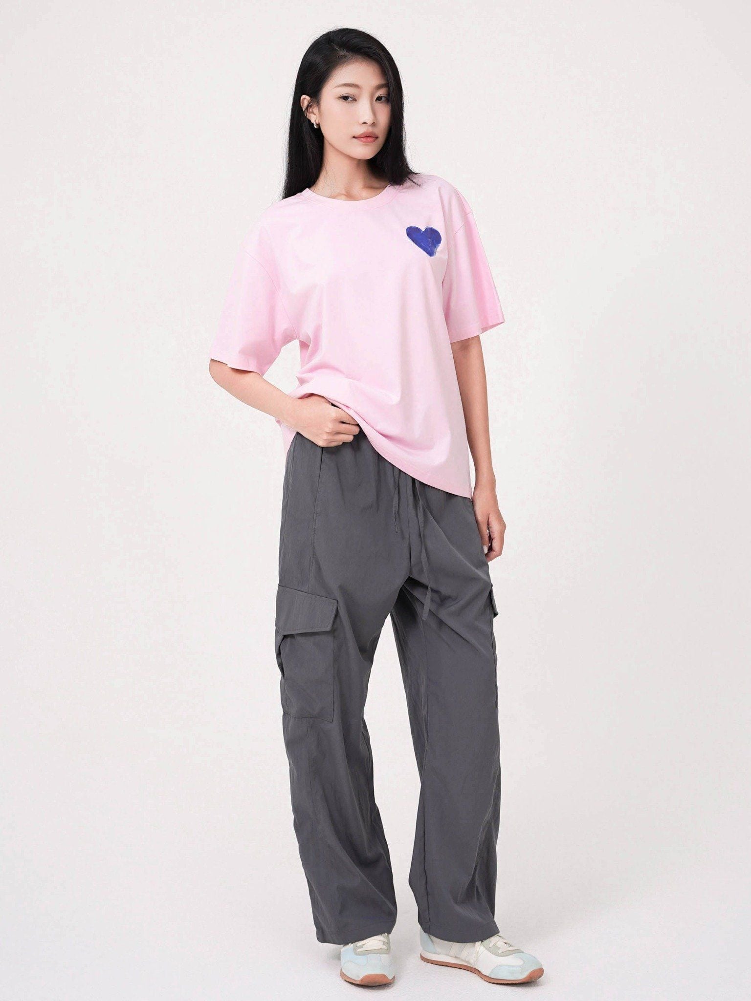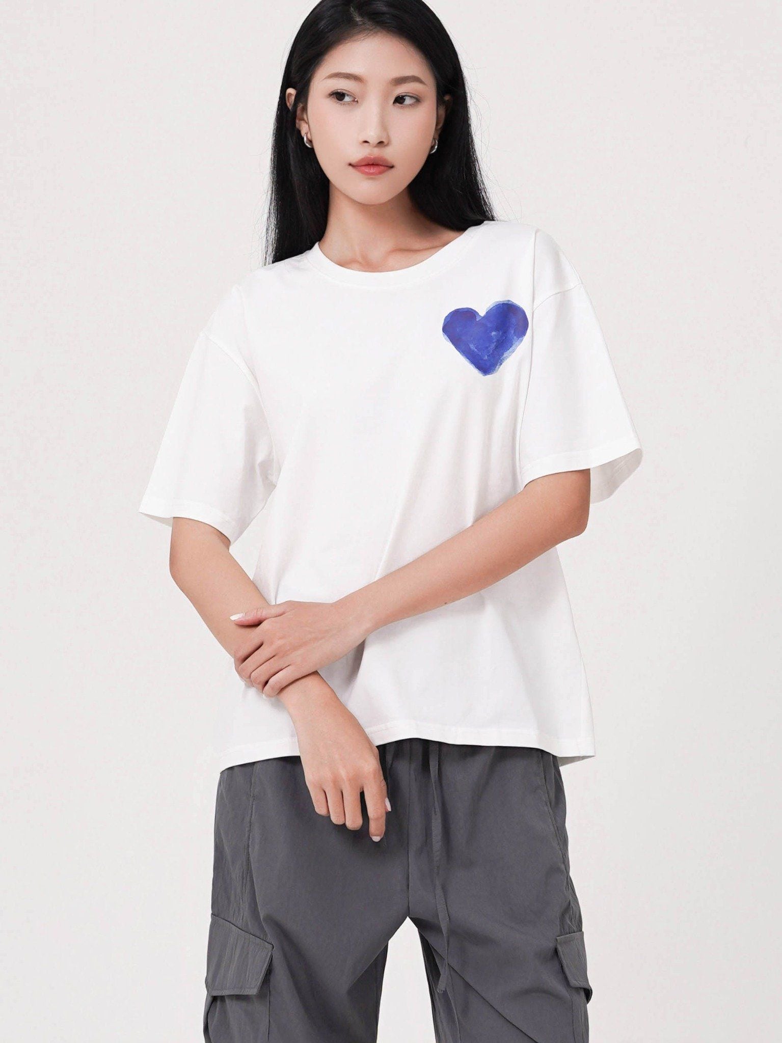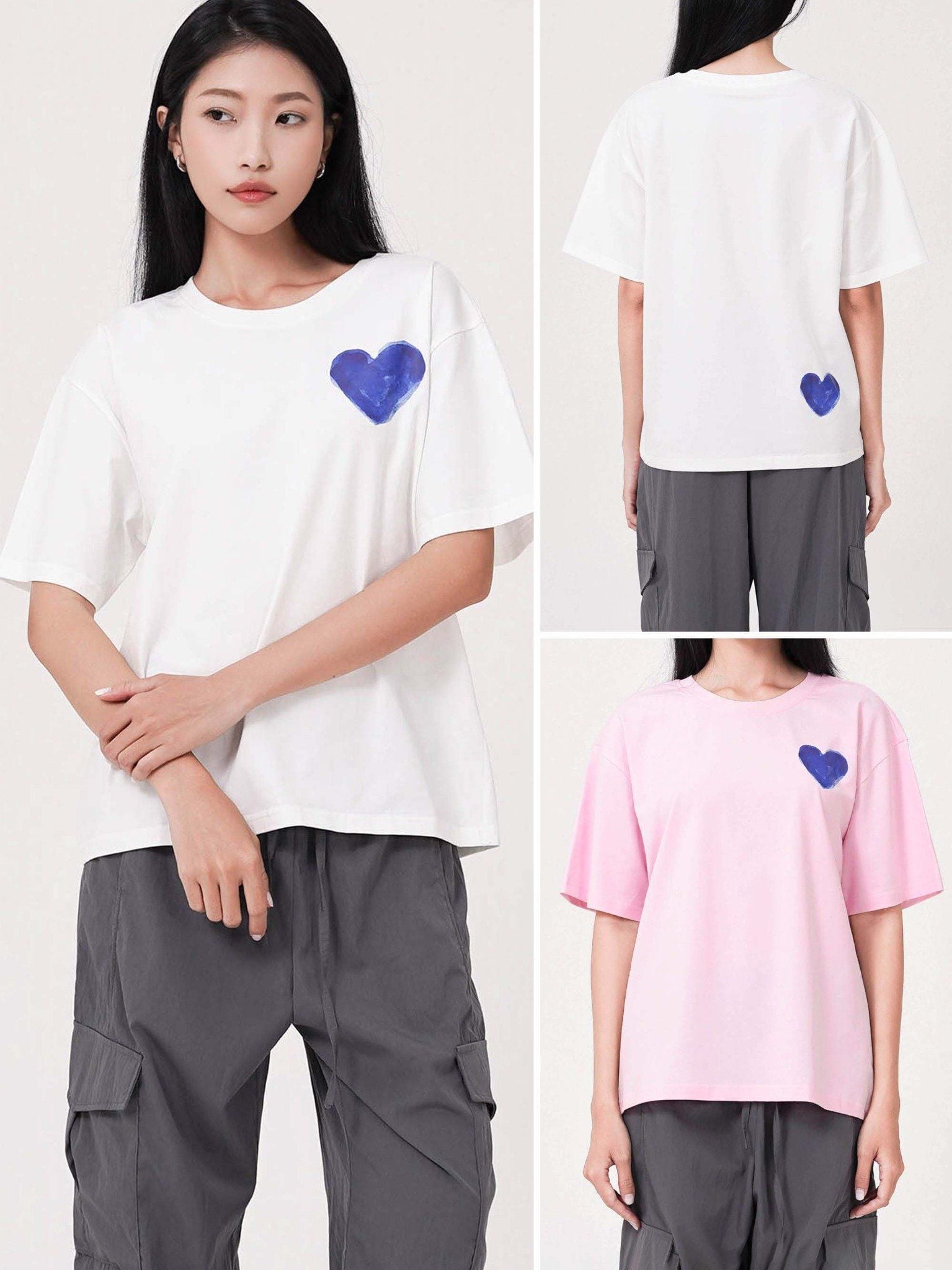 - Áo thun nữ phom rộng in hình, chất vải có độ co giãn vừa phải.