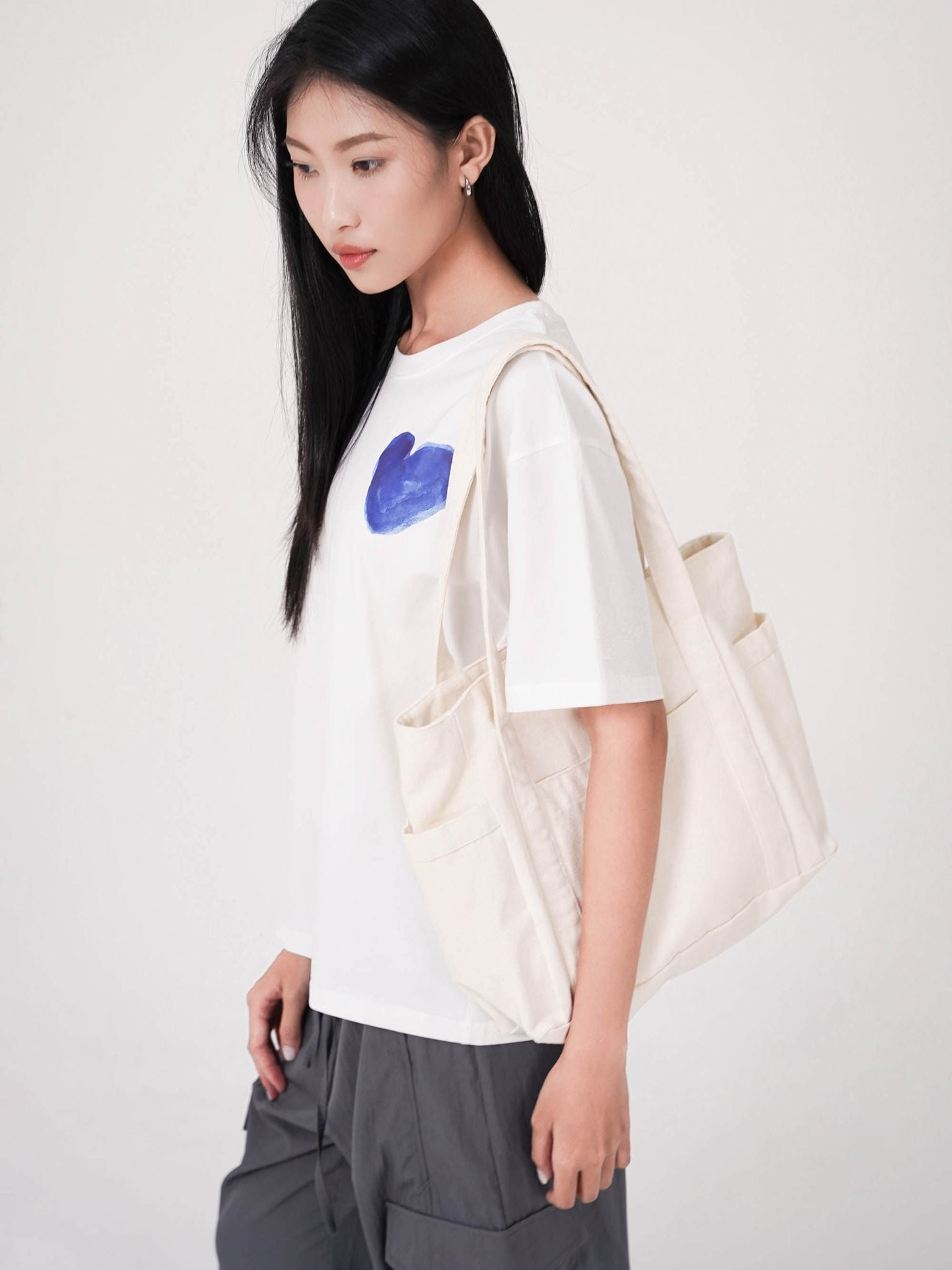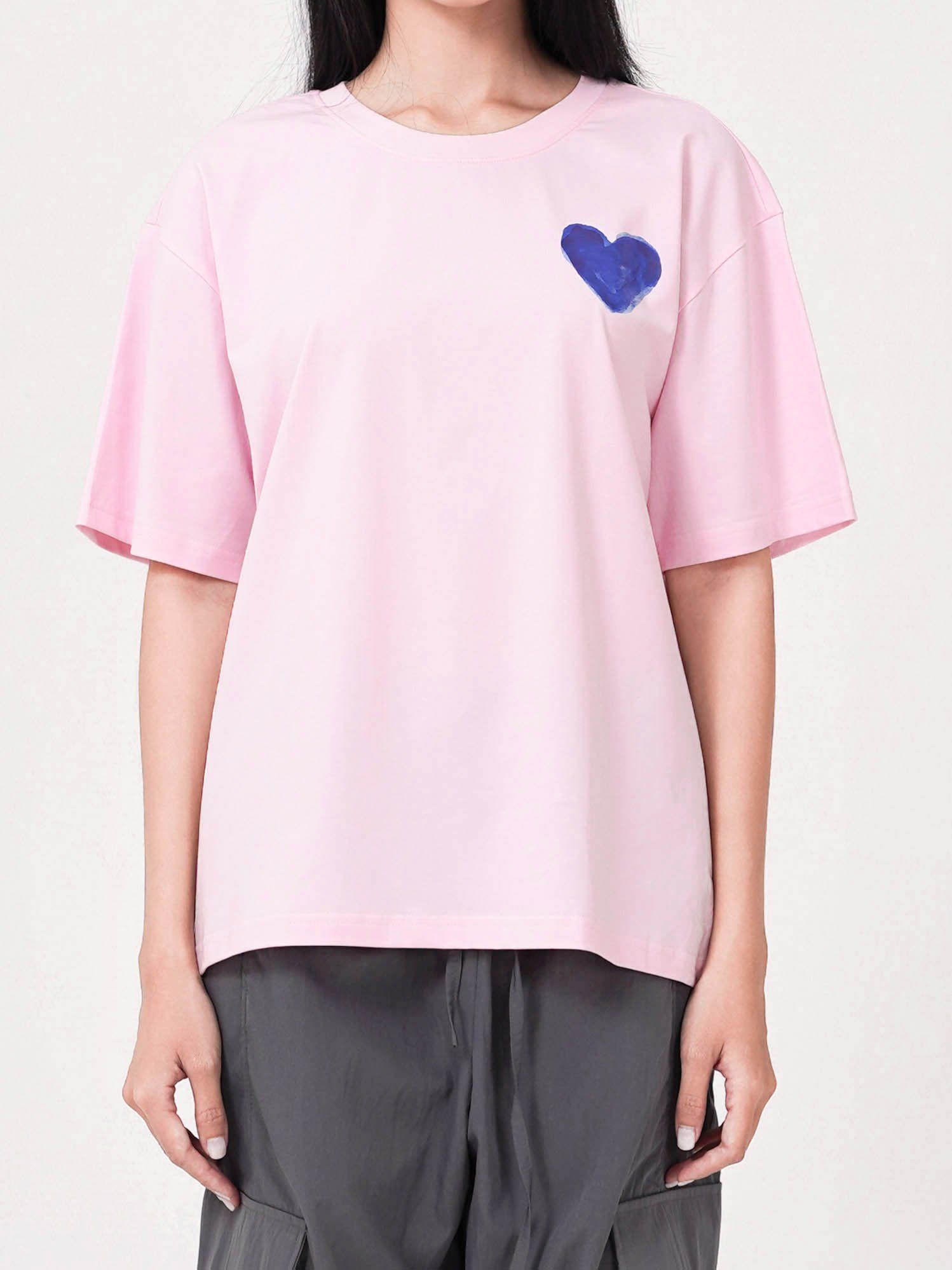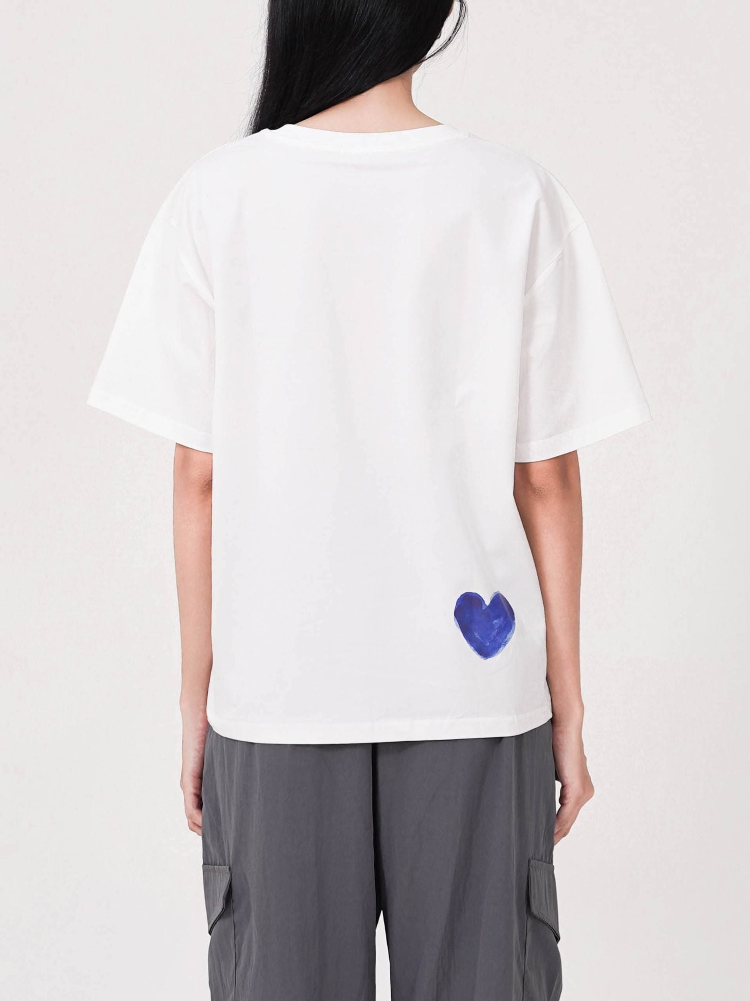 - Áo thun nữ phom rộng in hình, chất vải có độ co giãn vừa phải.