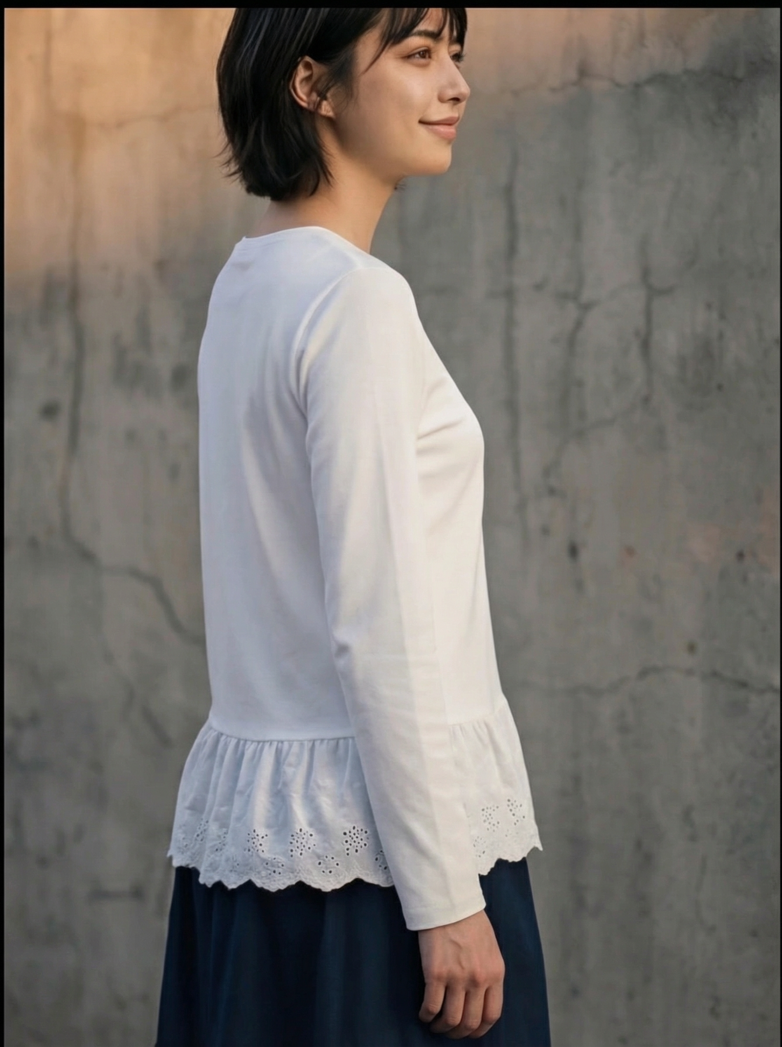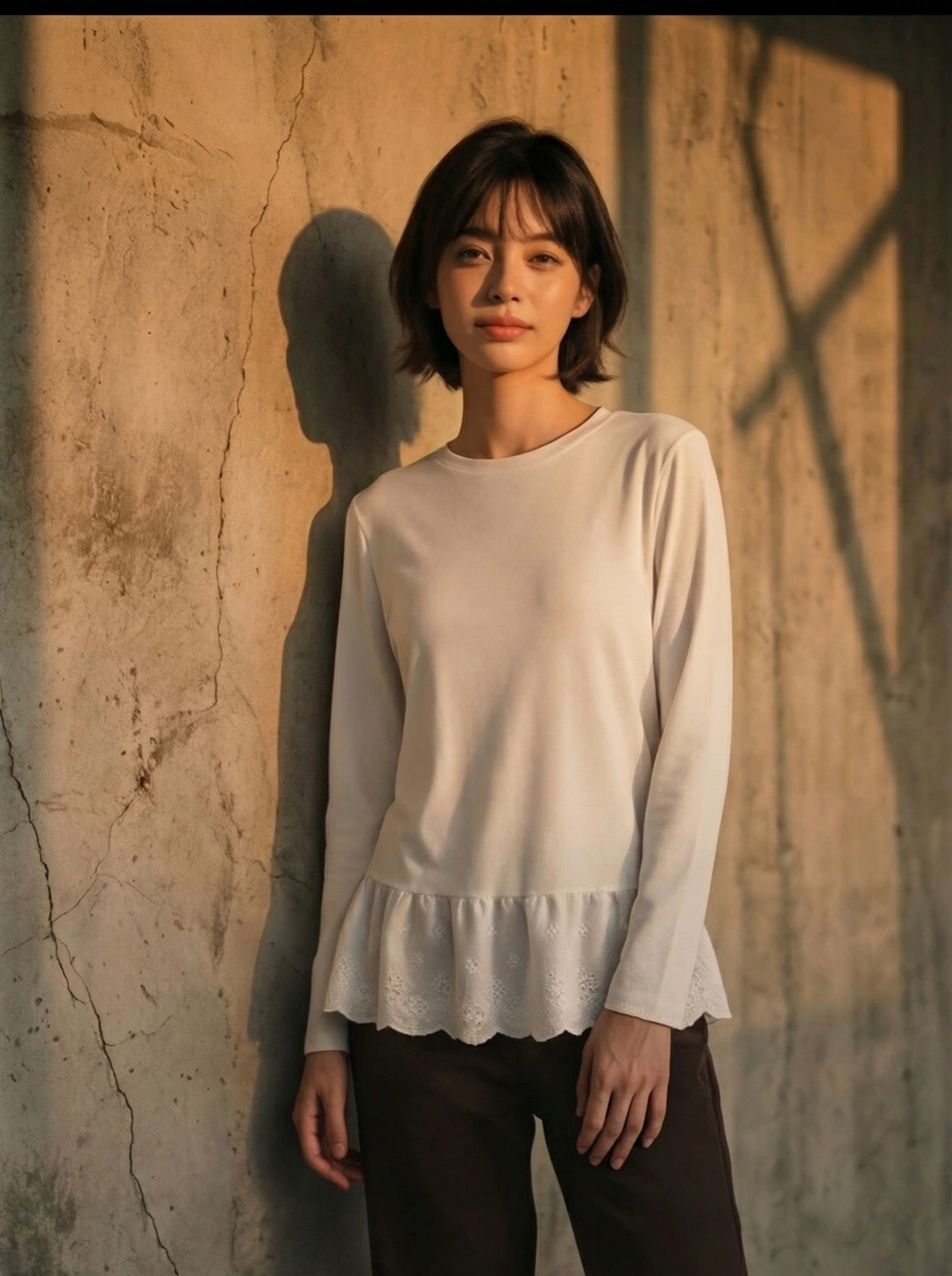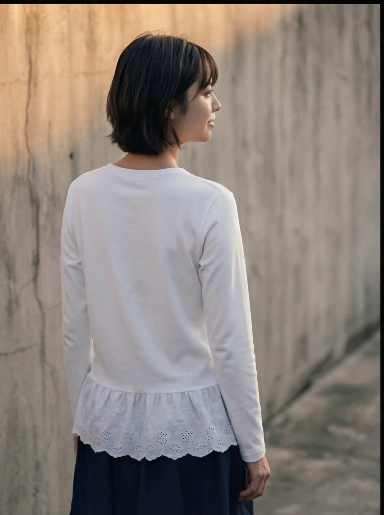 - Áo thun kiểu nữ dài tay, viền ren. Chất vải dày dặn và co giãn tốt