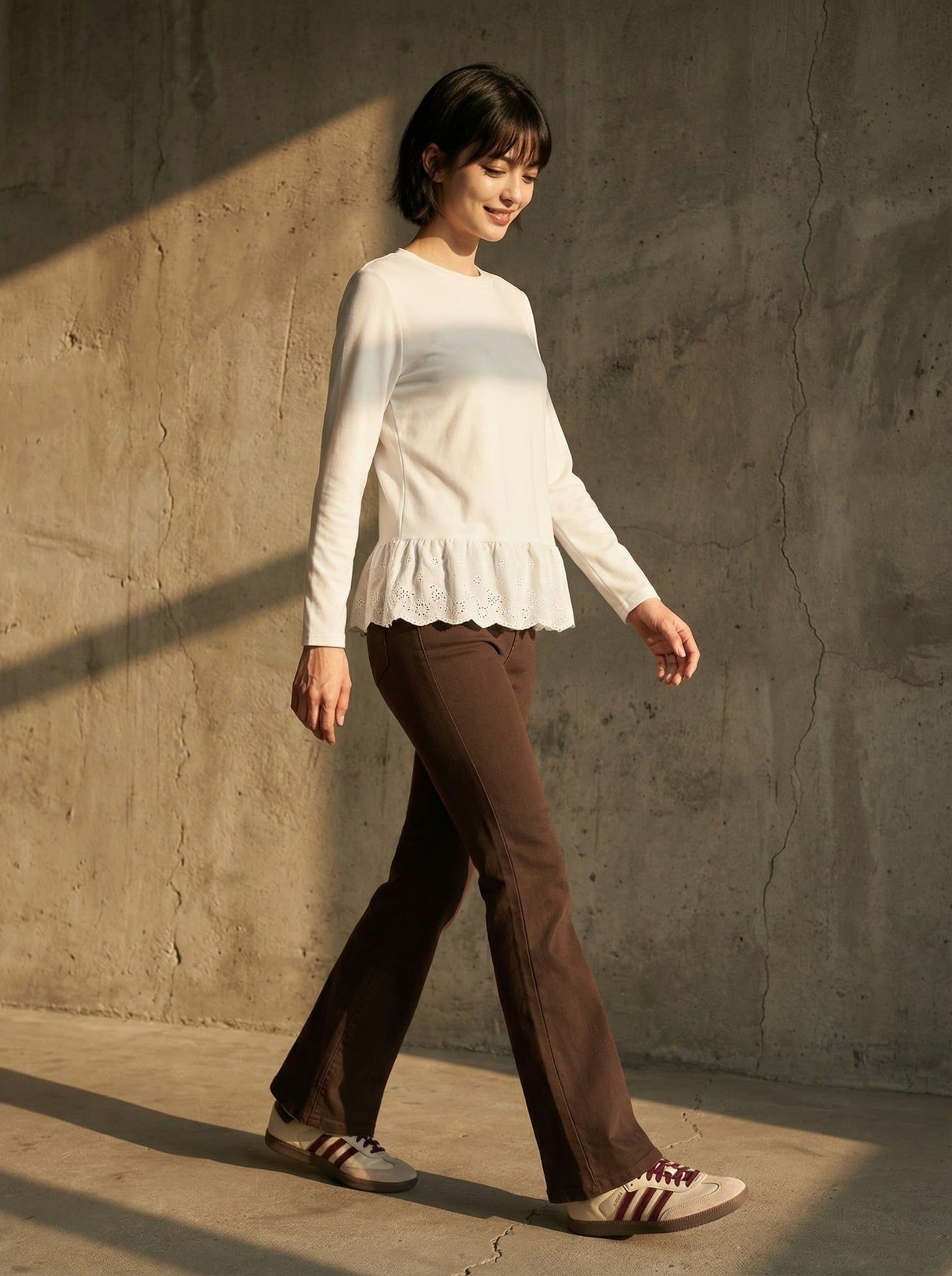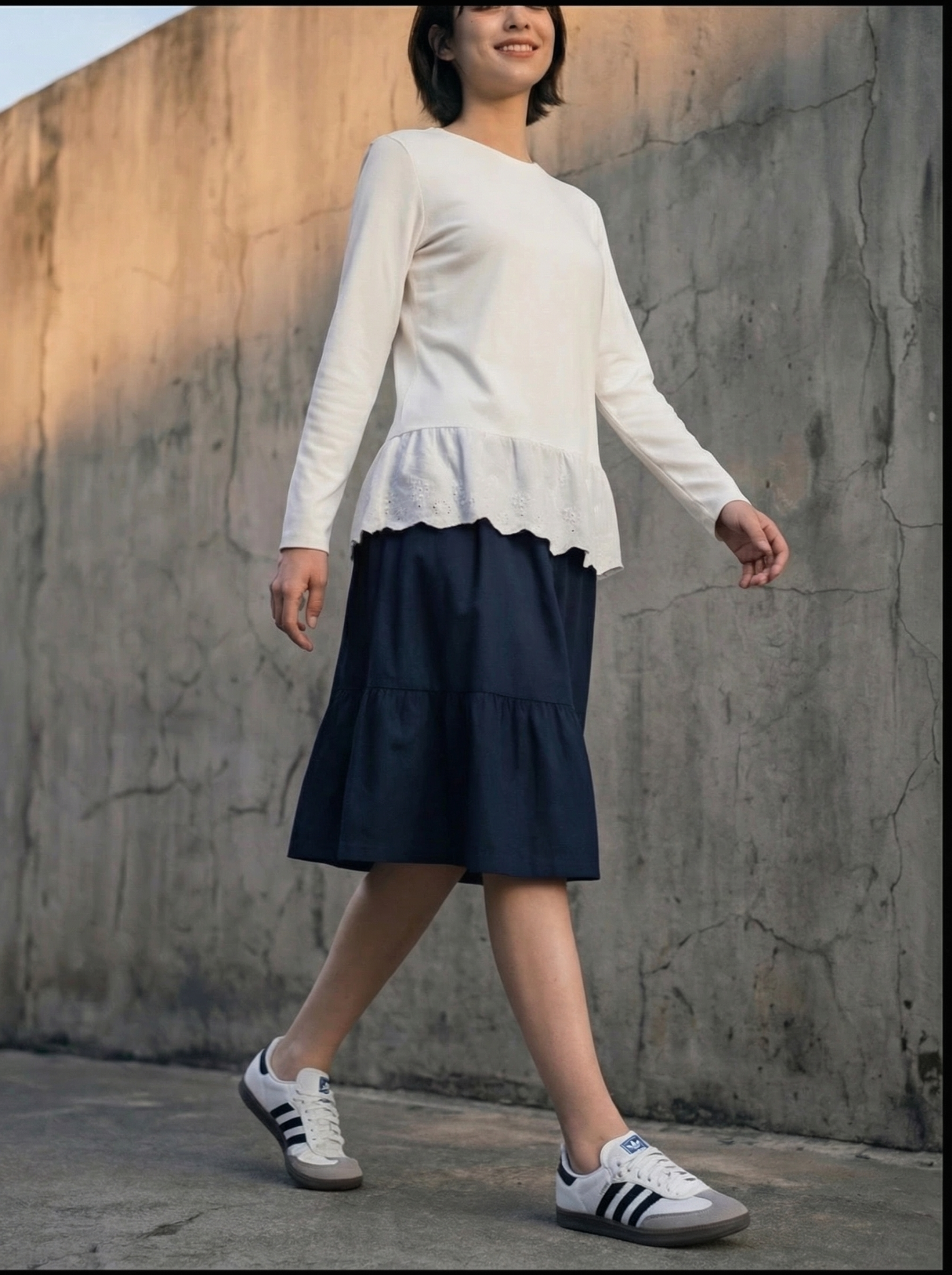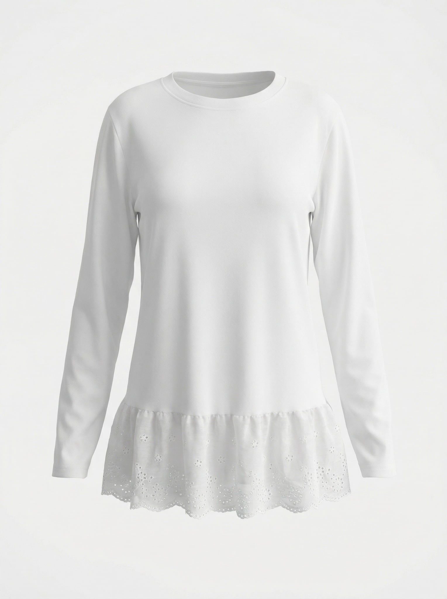 - Áo thun kiểu nữ dài tay, viền ren. Chất vải dày dặn và co giãn tốt