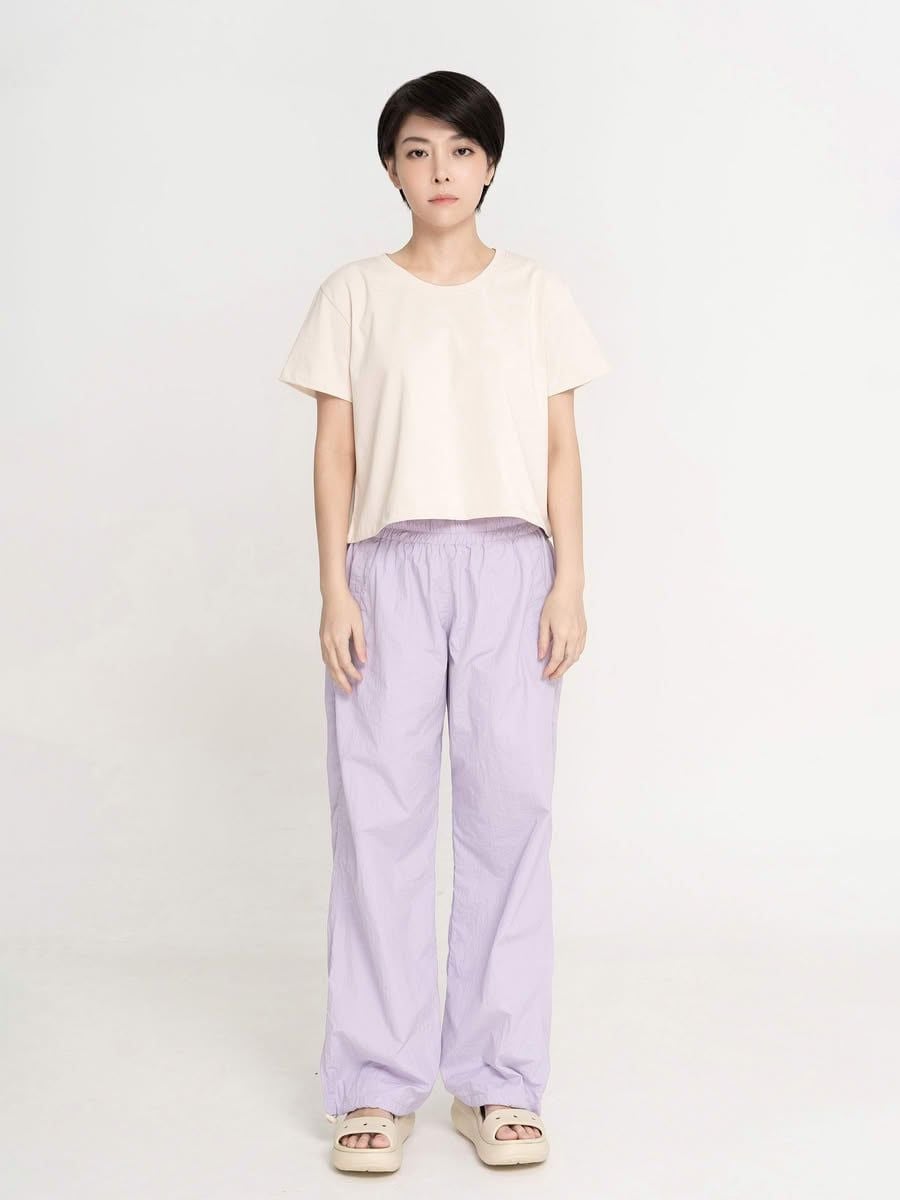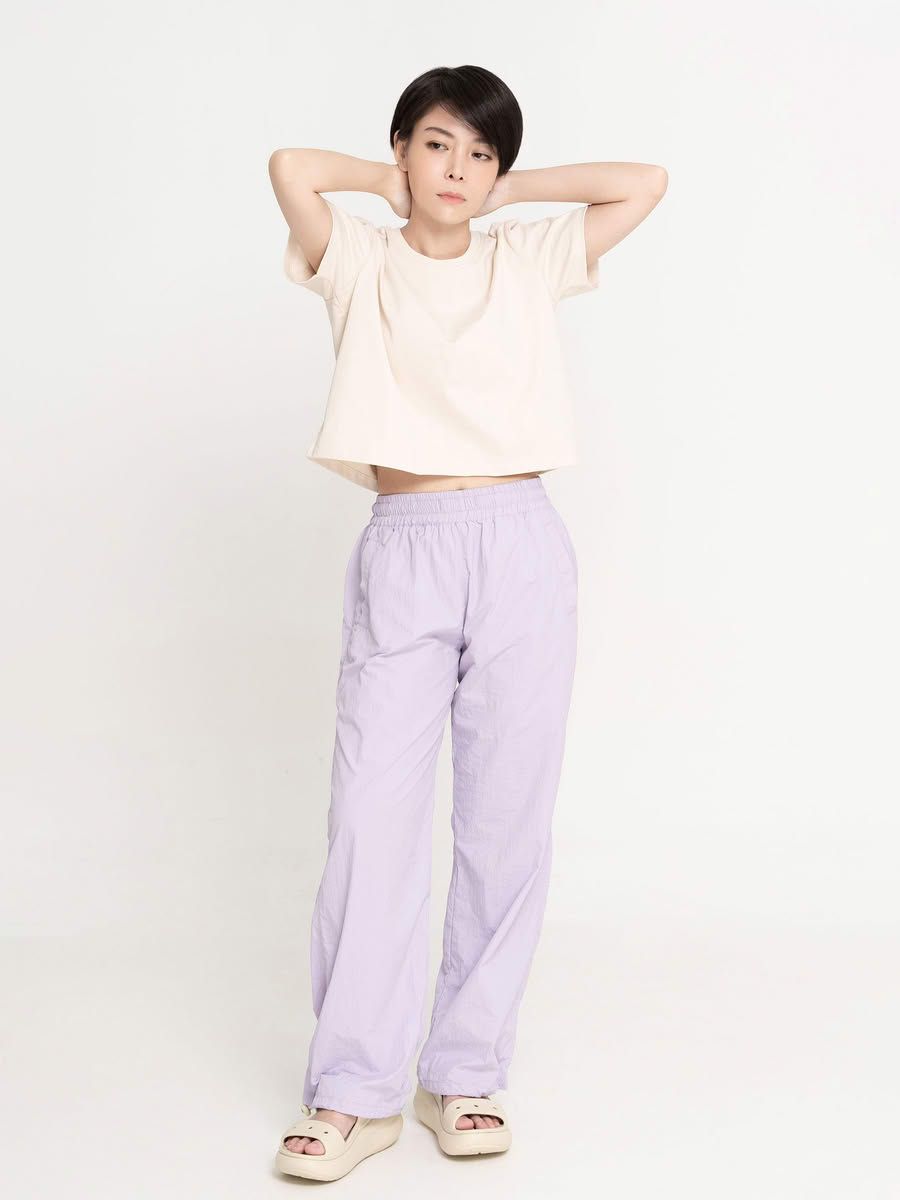 - Quần vải dù túi hộp, eo có thun co giãn và có dây rút.