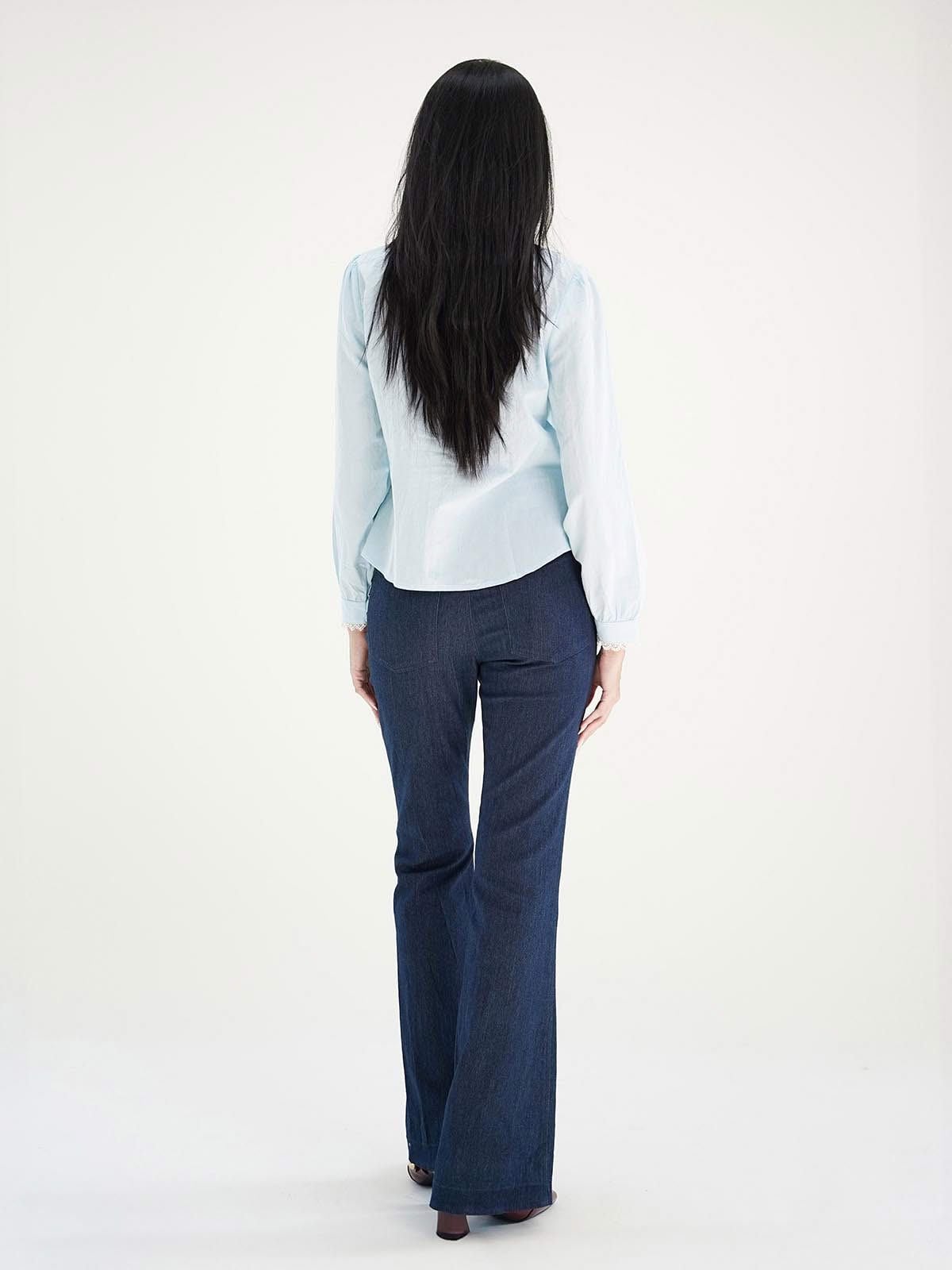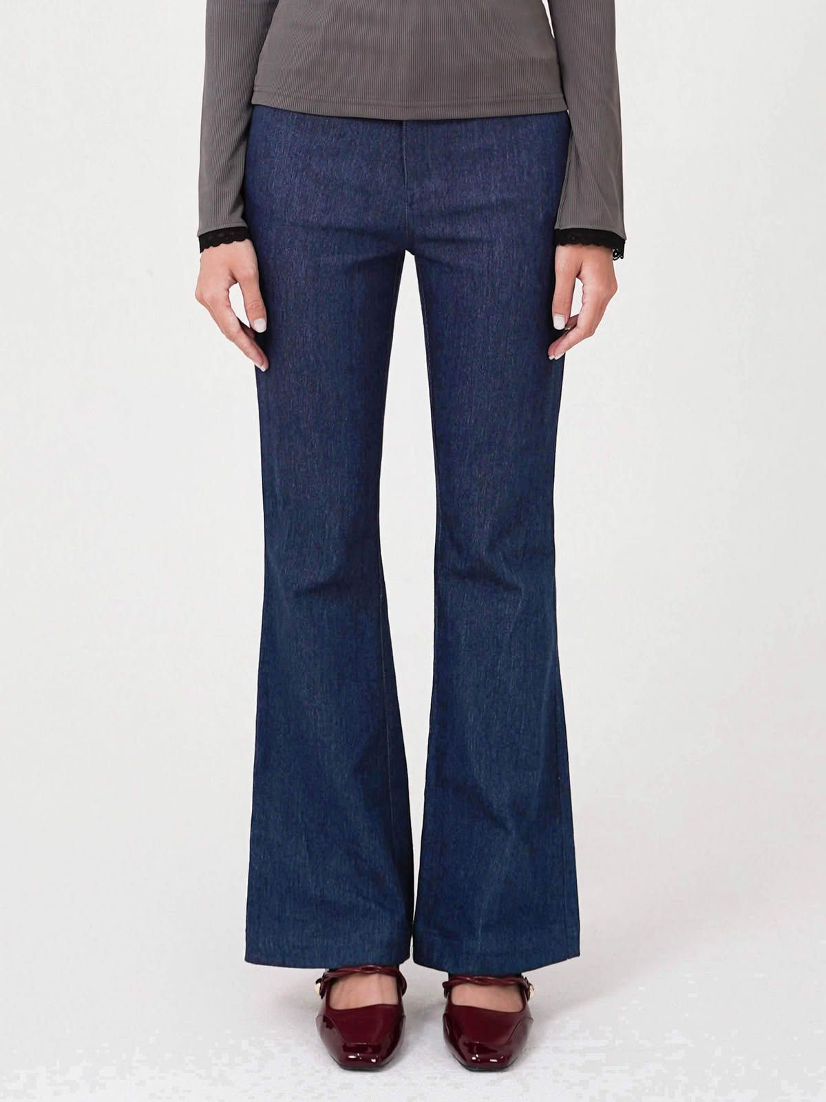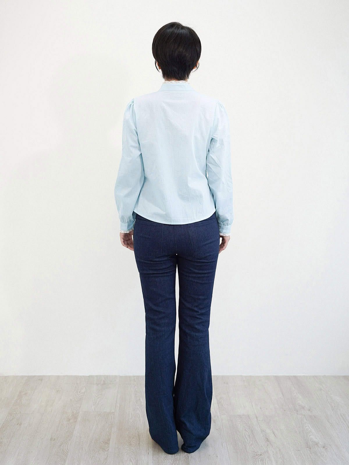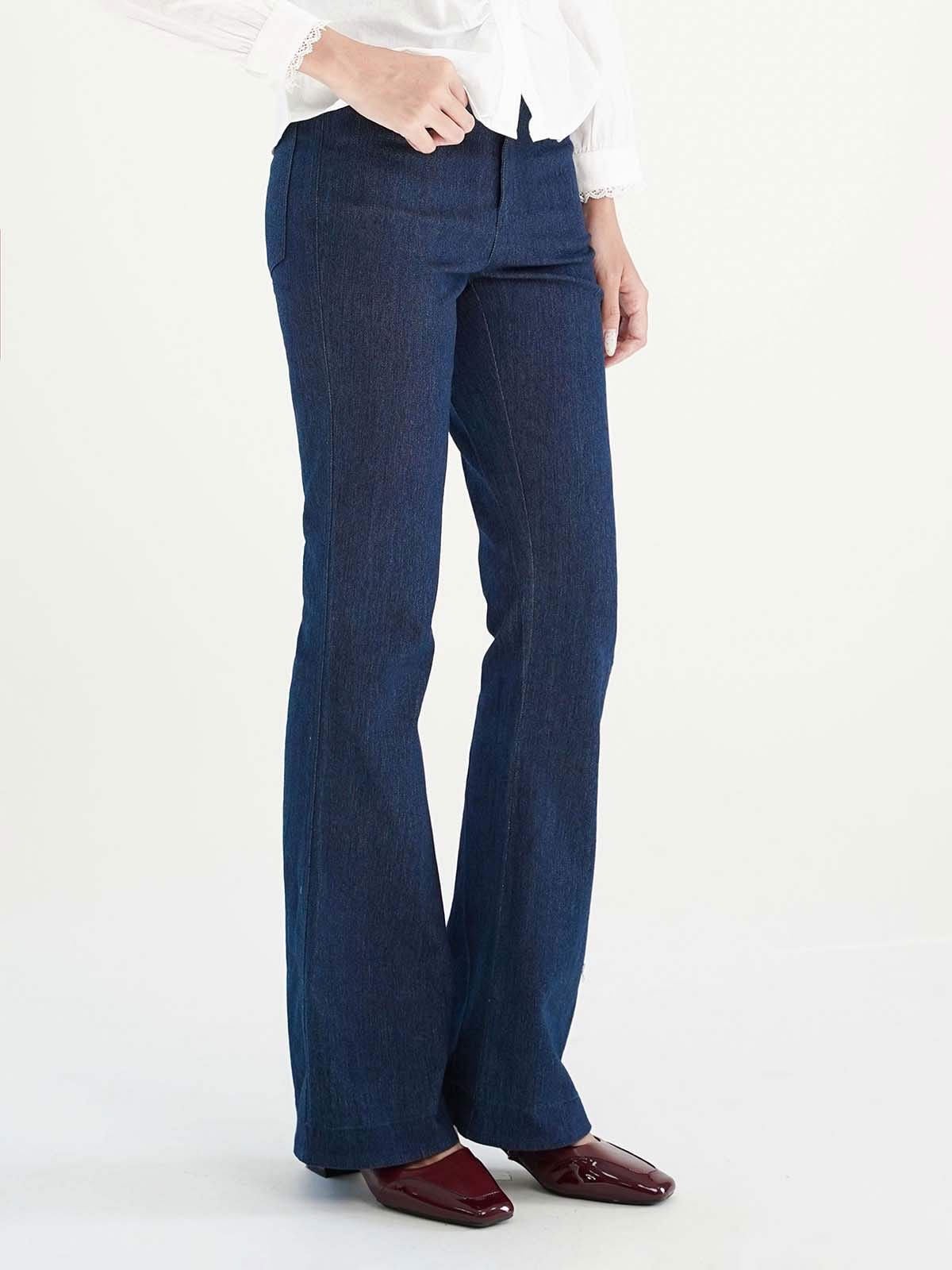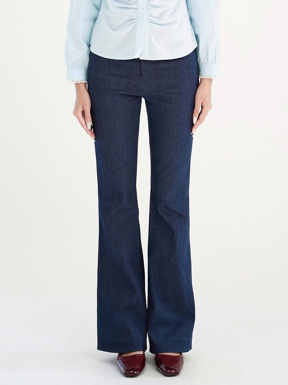 - Quần cotton ống loe, chất vải co độ co giãn nhẹ.