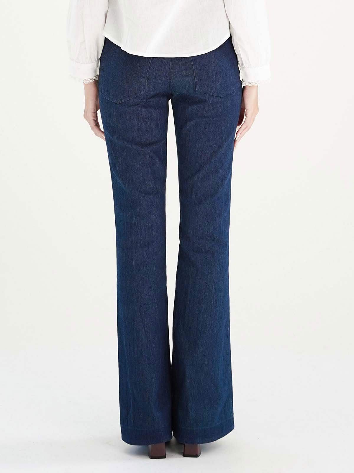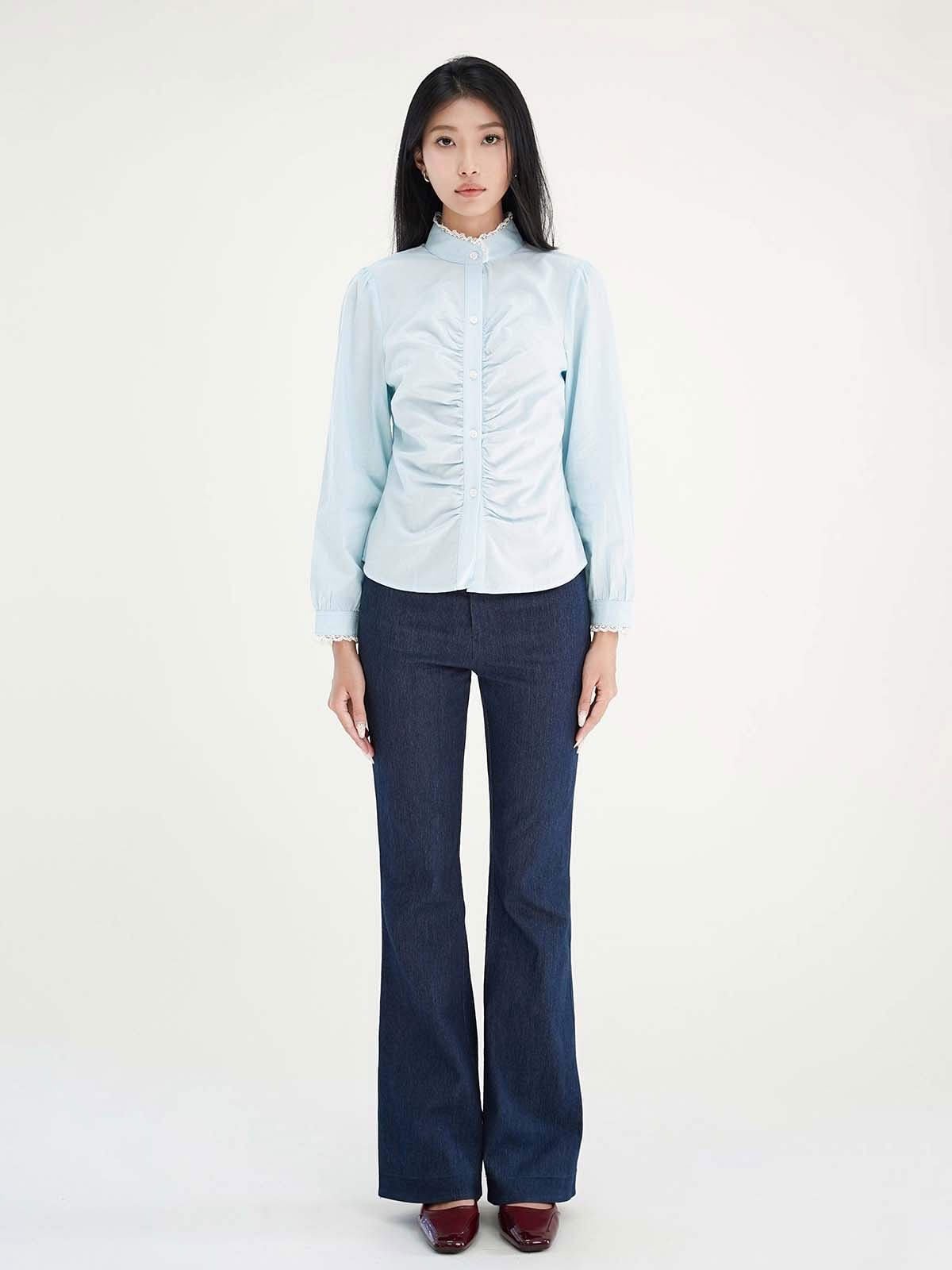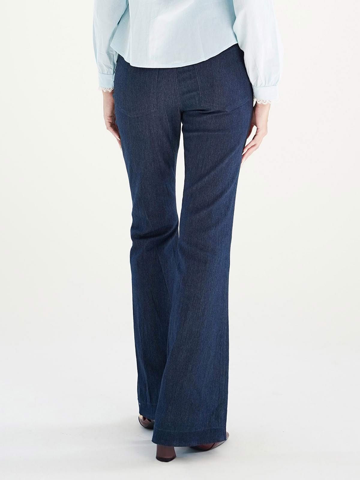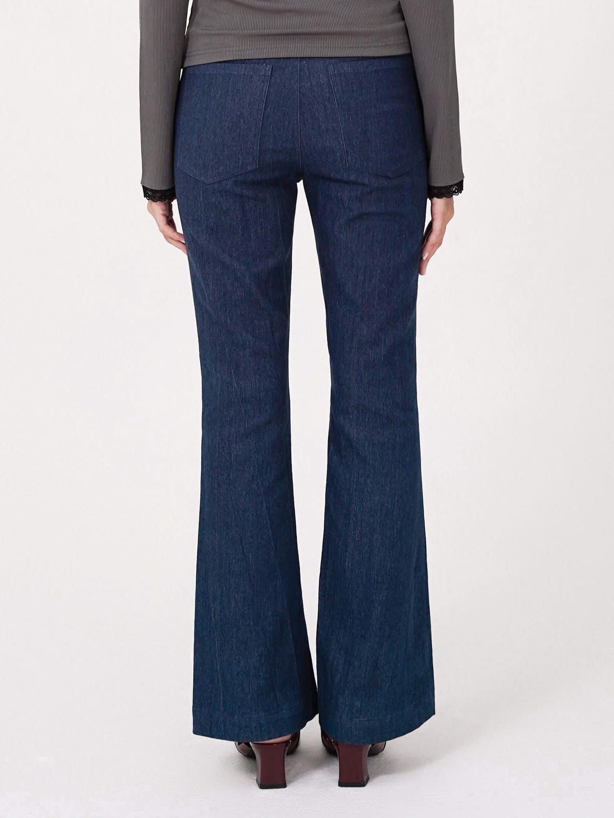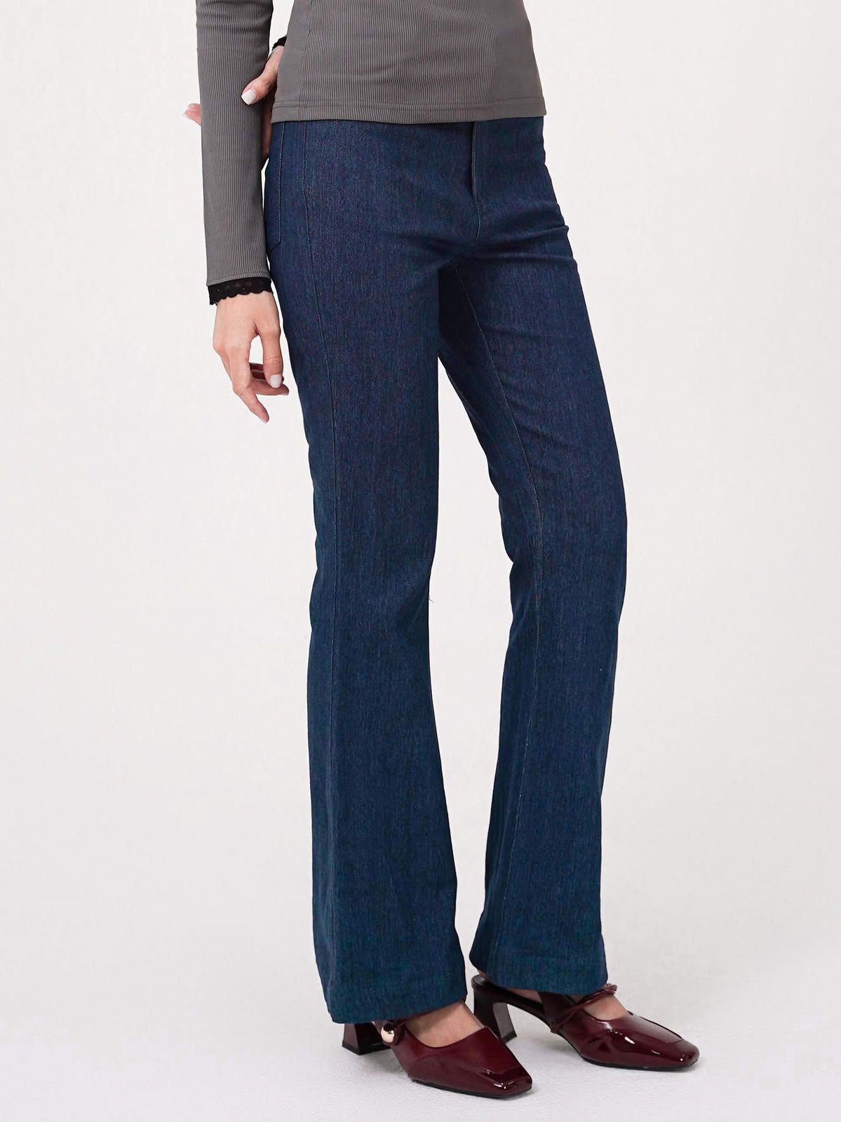 - Quần cotton ống loe, chất vải co độ co giãn nhẹ.