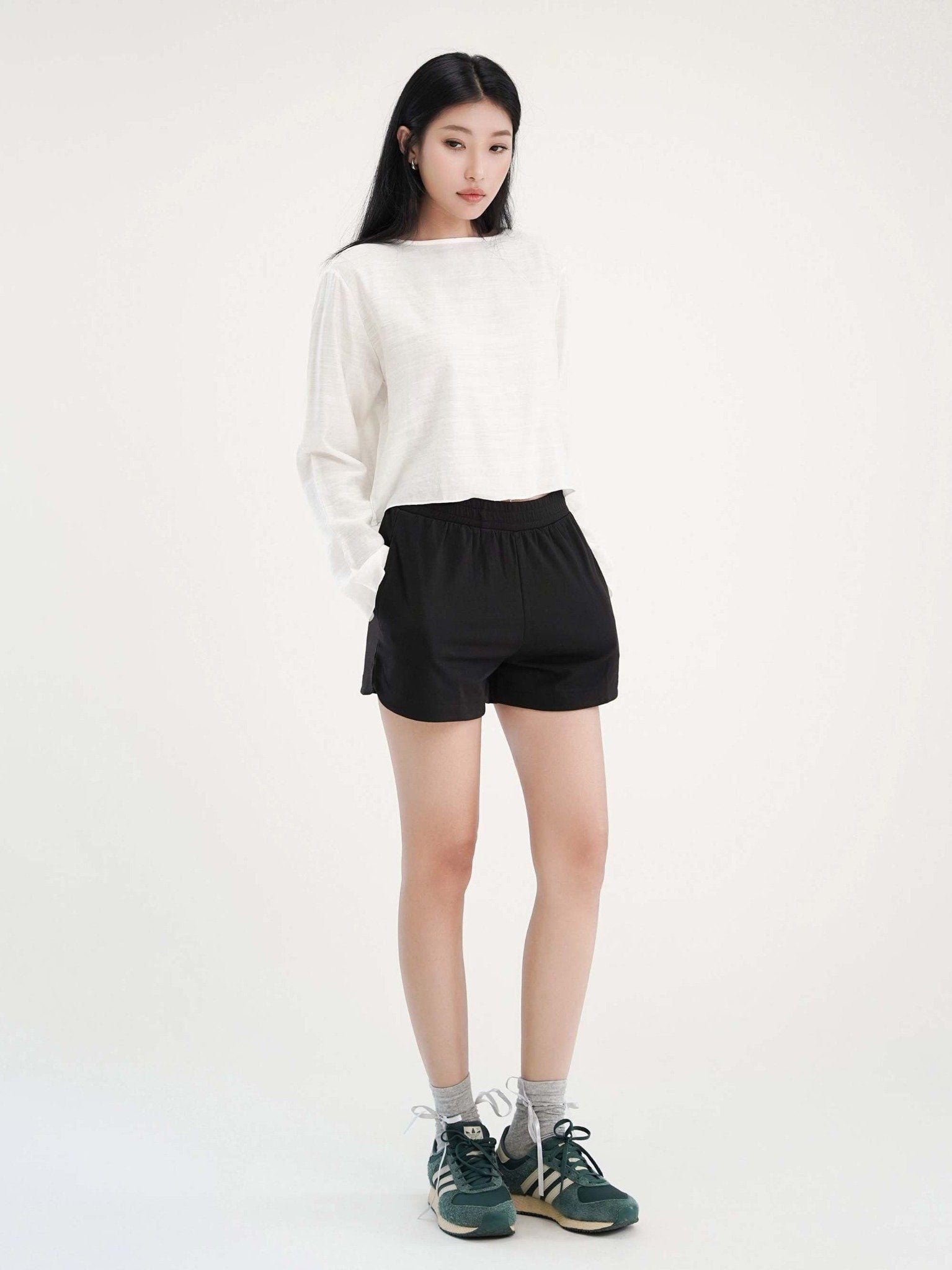 - Quần ngắn thun nữ, lưng thun co giãn, chất vải dày dặn và có độ co giãn vừa phải.