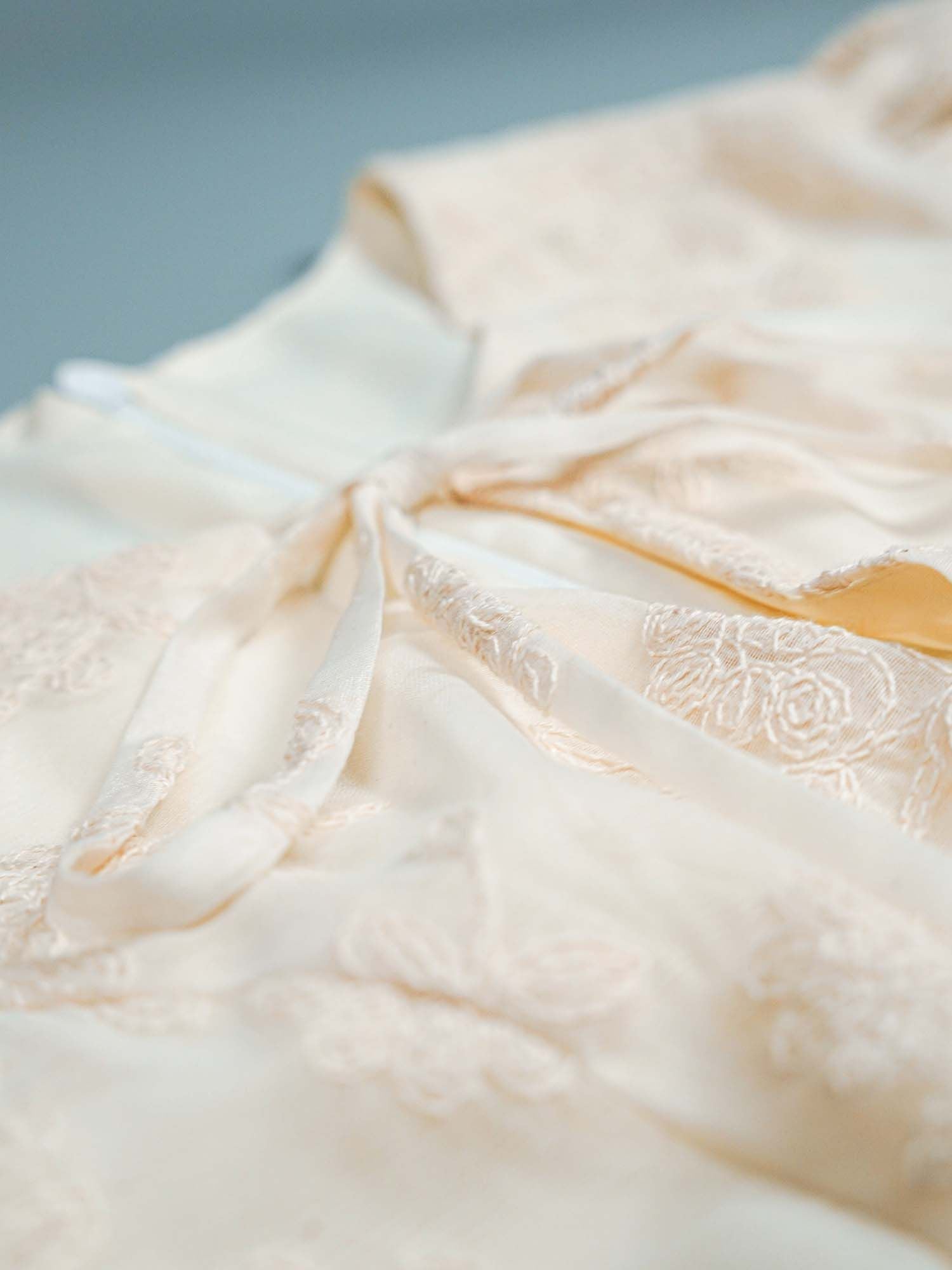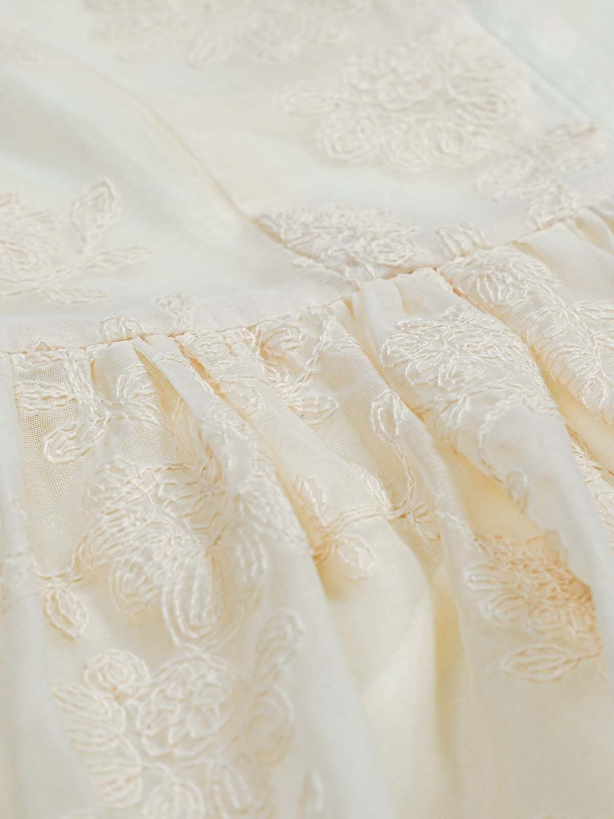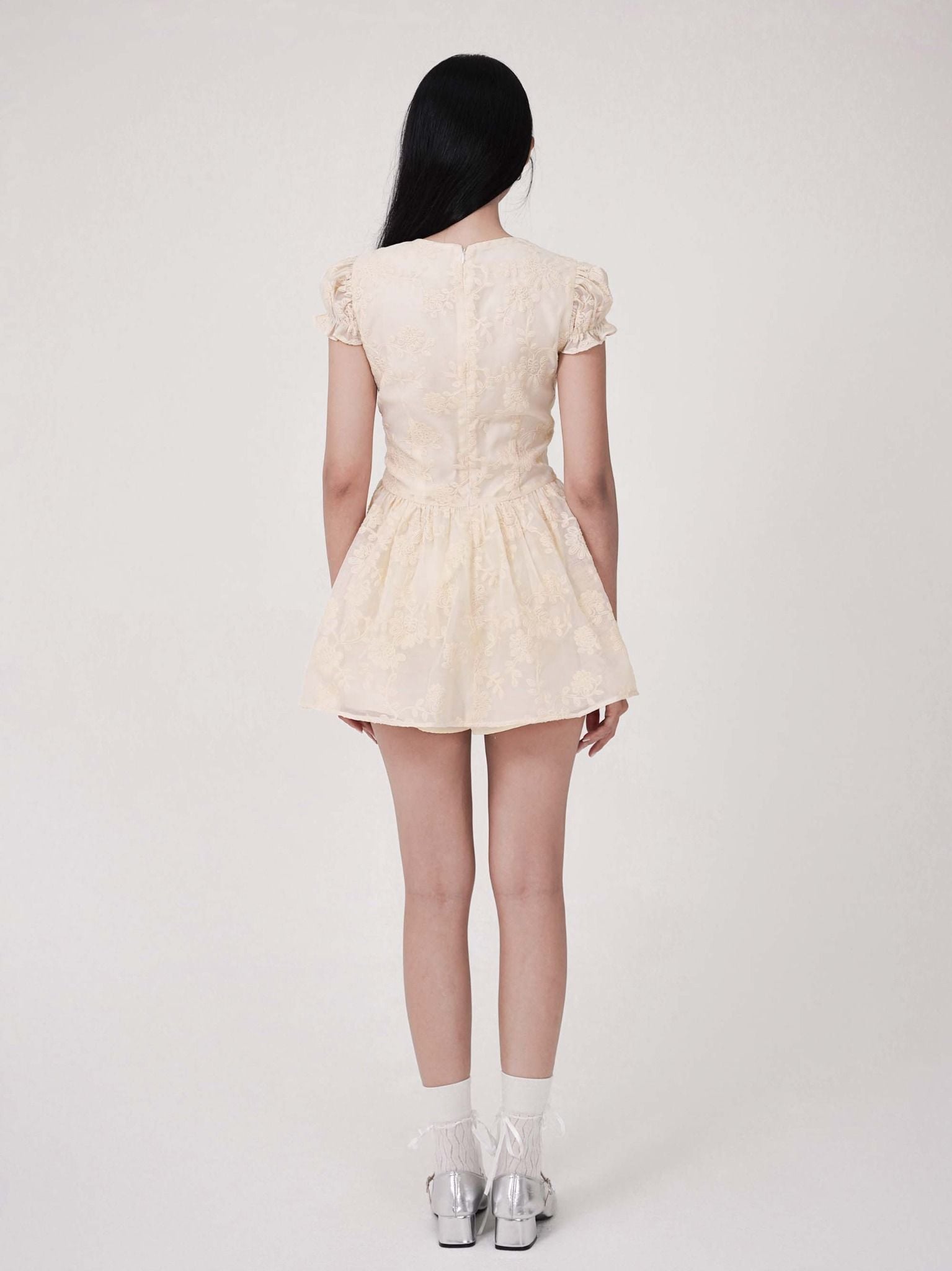 - Đây là mẫu đầm ngắn nữ mang phong cách nhẹ nhàng, thanh lịch. Phần eo được chiết ôm nhẹ, giúp tạo đường cong cơ thể. Vải ren được may 2 lớp (thân dưới là quần), có hoa văn nổi tone-sur-tone, mang đến vẻ sang trọng và cổ điển. Phù hợp cho các dịp đi chơi, hẹn hò, dạo phố hoặc tiệc nhẹ.