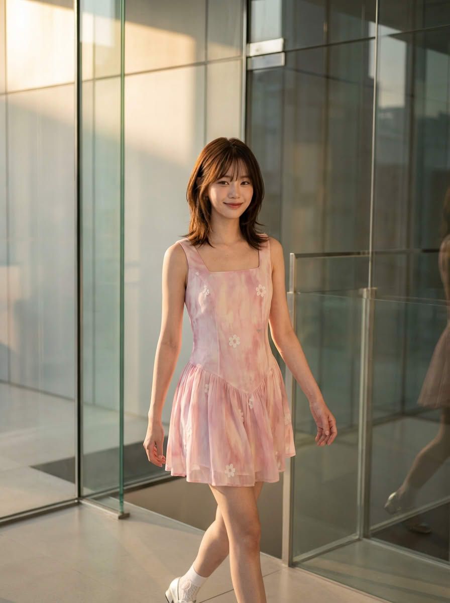 - Đầm ngắn dáng xòe nhẹ, thiết kế sát nách với phần ngực vuông, tôn dáng và tạo cảm giác thanh thoát, thoải mái khi mặc. Phần chân váy được xếp ly nhẹ, tạo độ bồng bềnh mềm mại khi di chuyển. Đầm có họa tiết hoa nổi tinh tế, tạo điểm nhấn nhẹ nhàng và nữ tính. Vải voan mỏng phối lớp lót bên trong (phần dưới lót quần không sợ lộ), mang lại sự bay bổng và mát mẻ, phù hợp cho mùa hè.