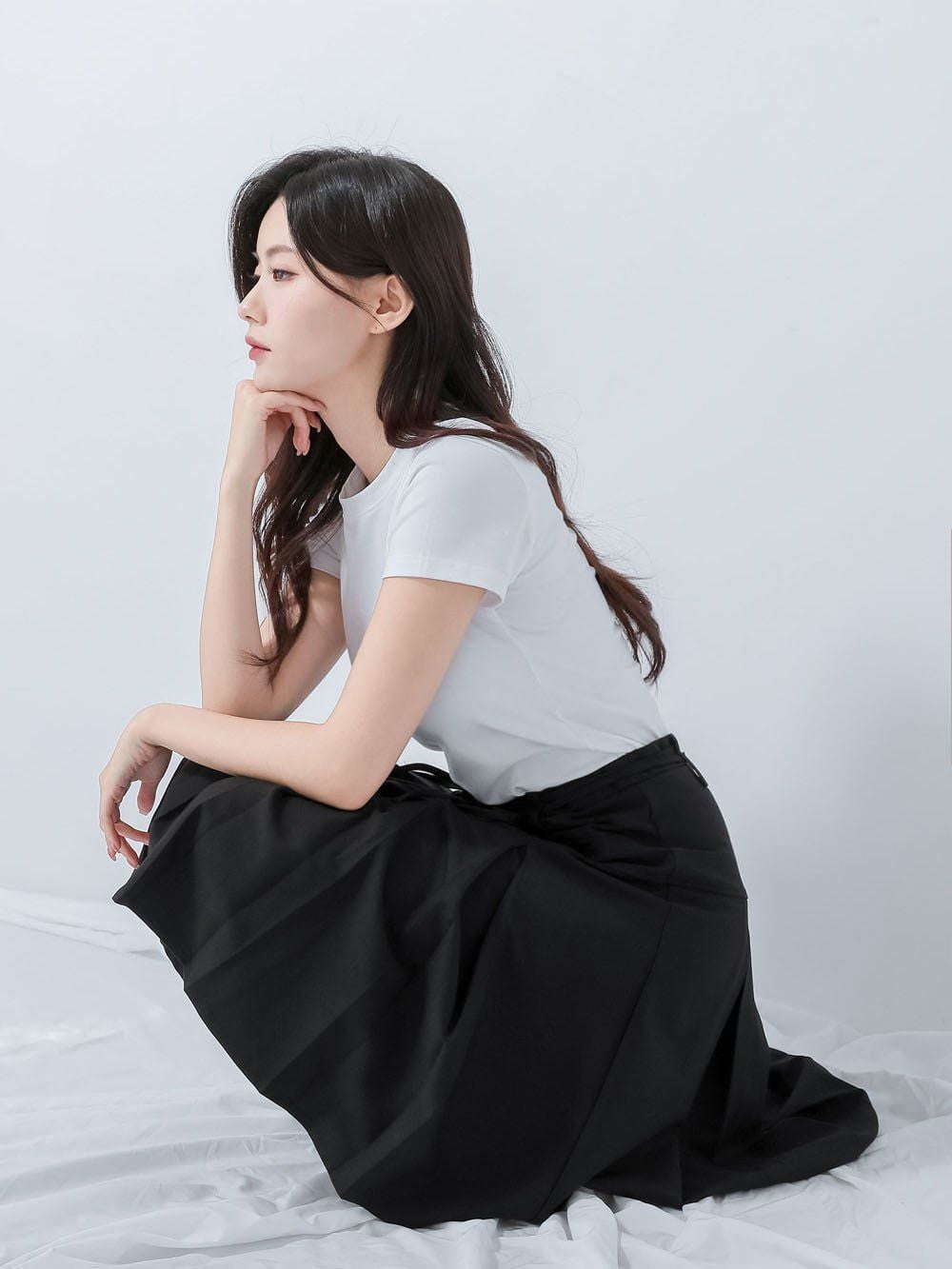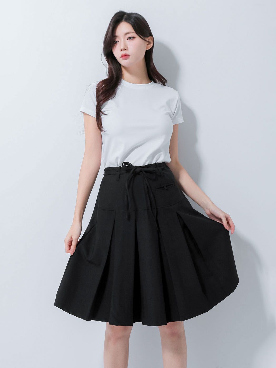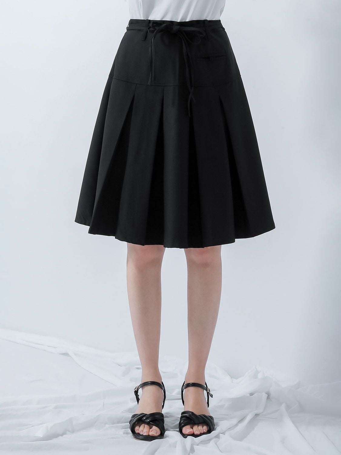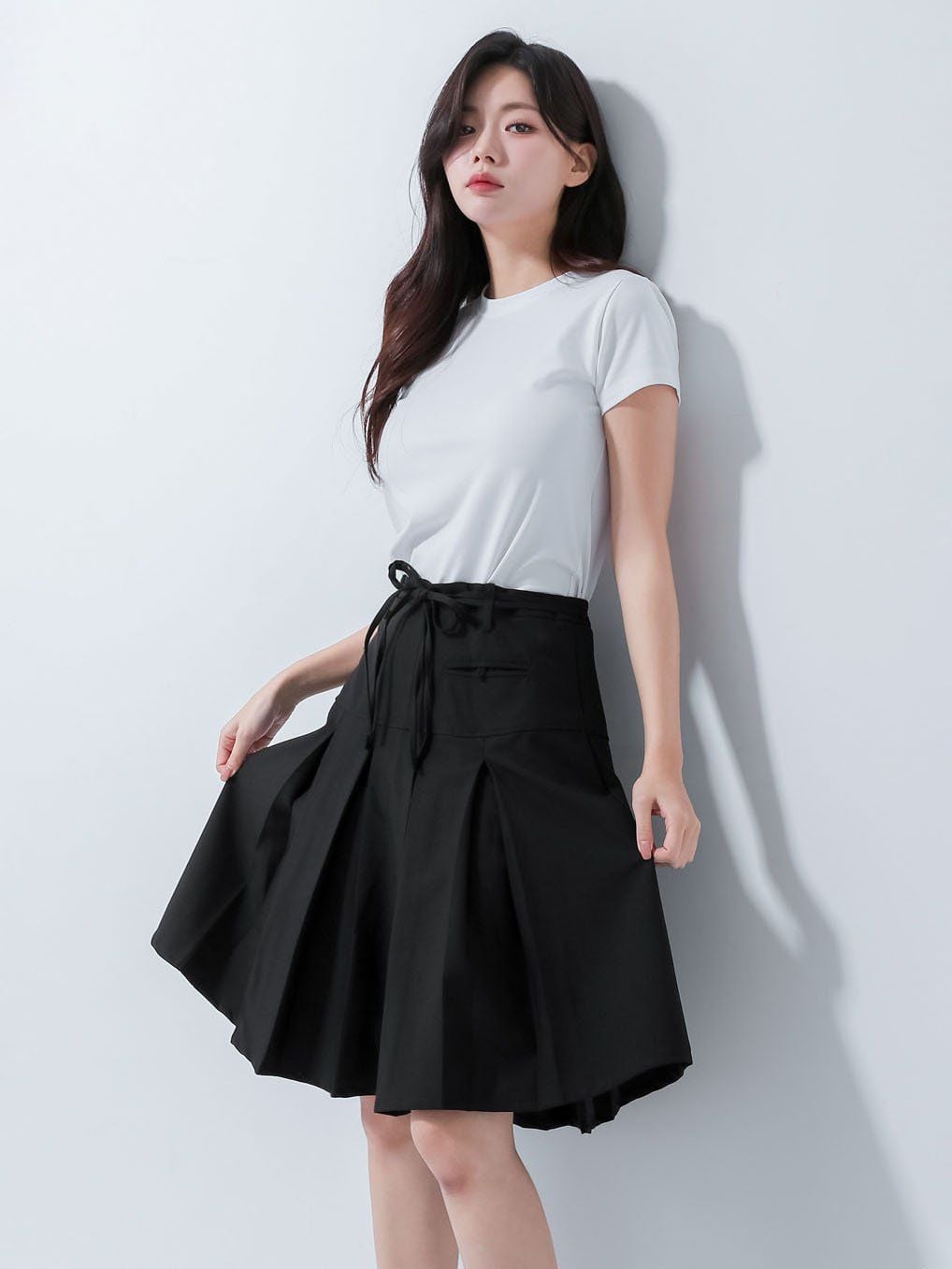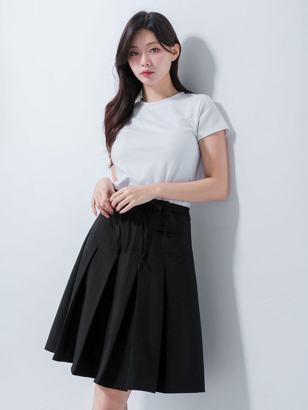 - Chân váy xòe chữ A xếp ly. Vải dày dặn, giữ form tốt, có độ rũ nhẹ, Dáng xòe chữ A, giúp che khuyết điểm phần đùi và tạo hiệu ứng thon gọn cho đôi chân. Cạp cao, có dây rút thắt nơ phía trước tạo điểm nhấn nữ tính.