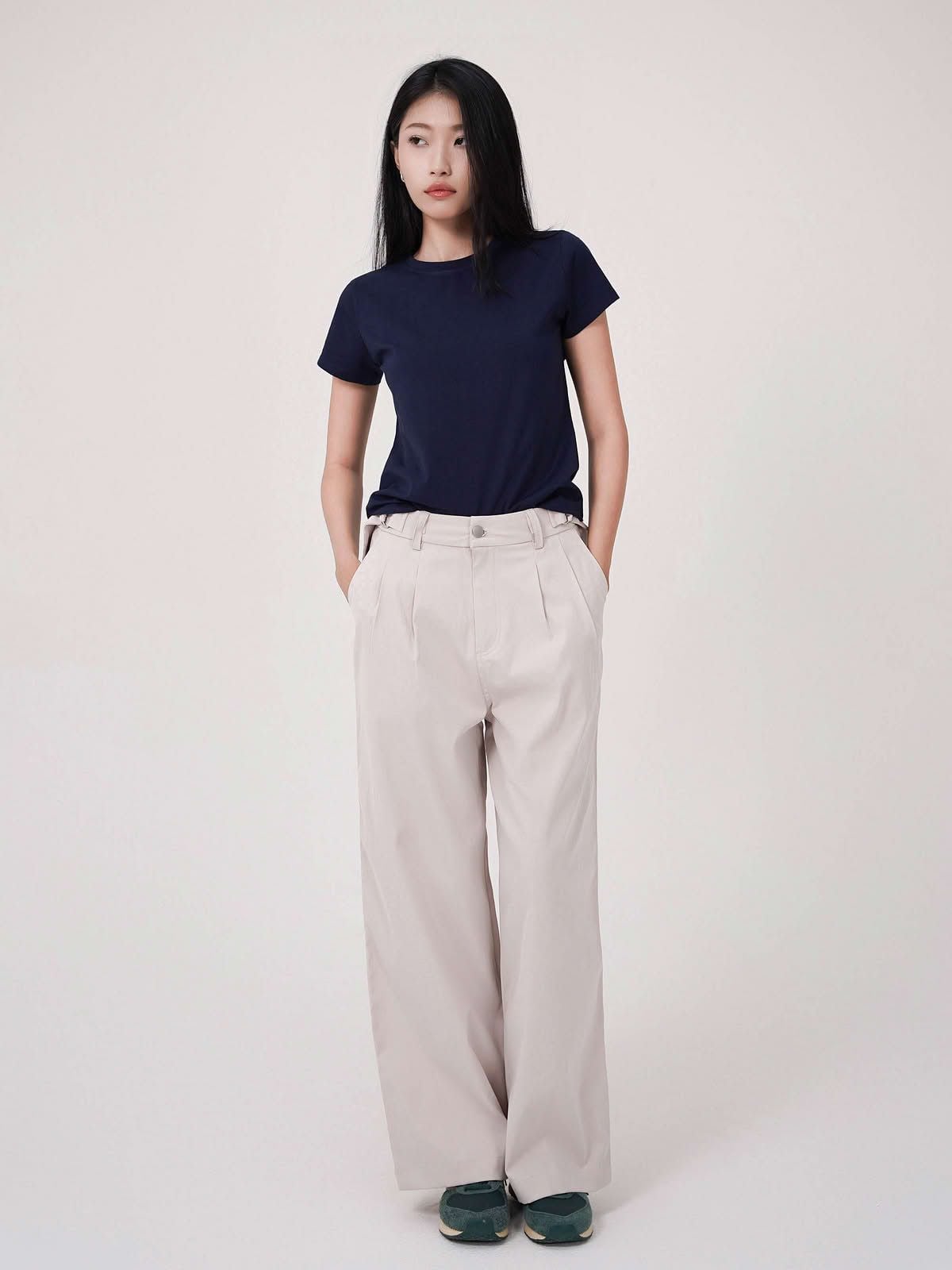 - Thiết kế quần suông lưng cao với phần ly nhẹ tinh tế, giúp tôn dáng và tạo hiệu ứng chân dài thon gọn. Chất liệu vải cao cấp, mềm mại nhưng vẫn đứng dáng, giúp outfit luôn chỉn chu và sang trọng. Item lý tưởng cho nàng công sở, dễ phối cùng áo sơ mi, blazer hay áo kiểu nữ tính.