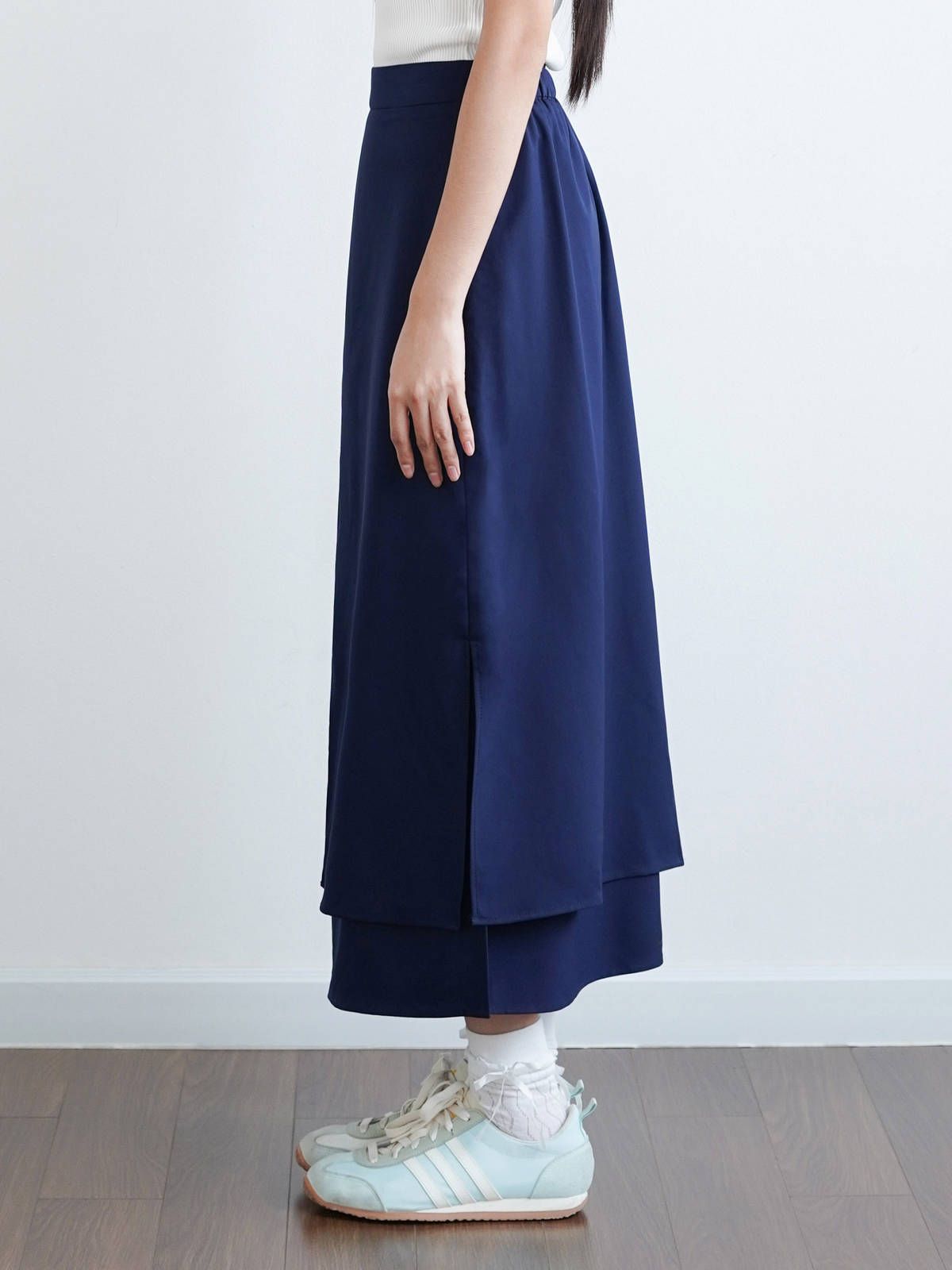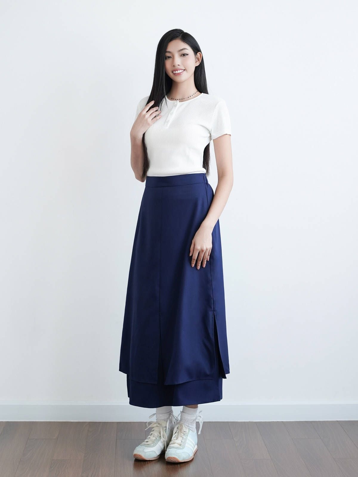 - Chân váy 2 lớp xẻ tà, lưng sau thun co giãn, chất vải mềm mại có độ rũ tự nhiên tạo sự thanh lịch, dễ dàng phối với áo thun áo kiểu hoặc áo sơ mi. Có thể mặc đi làm hay đi chơi đều thích hợp.