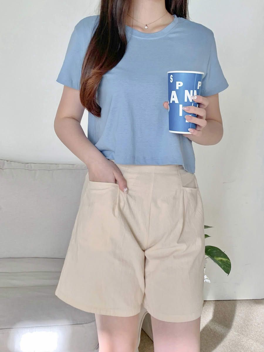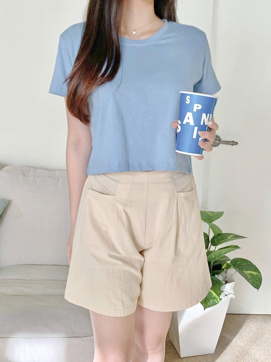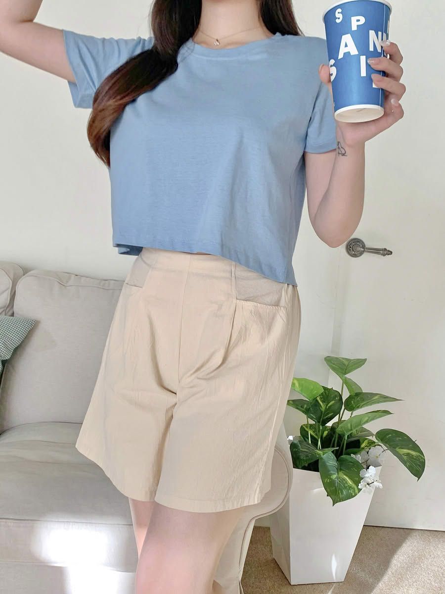 - Quần ngắn nữ lưng sau thun co giãn, chất vải có độ dày vừa phải và thoáng mát.