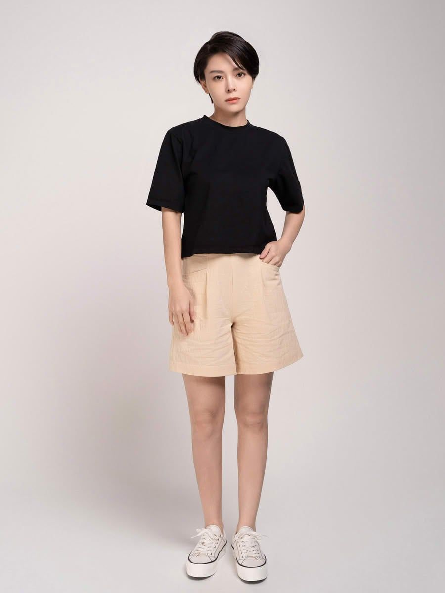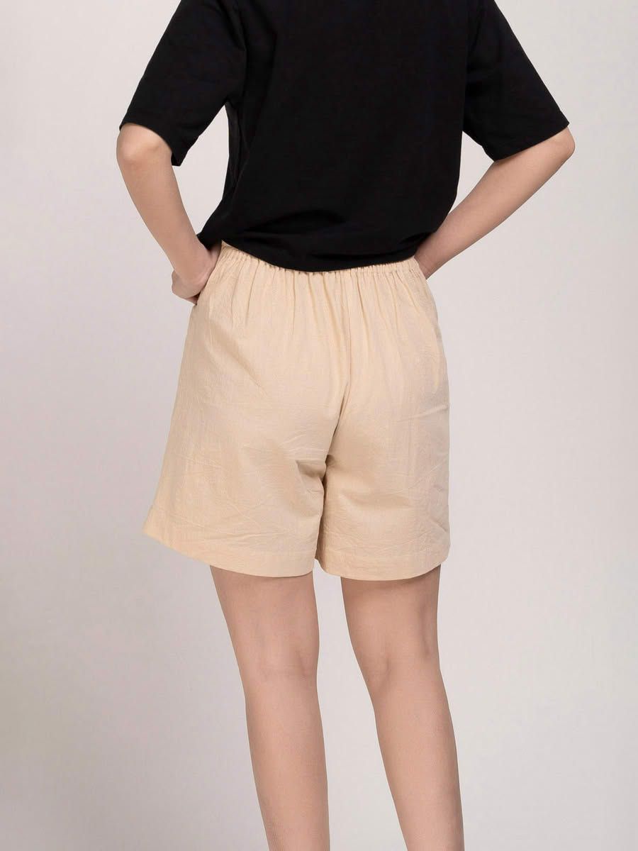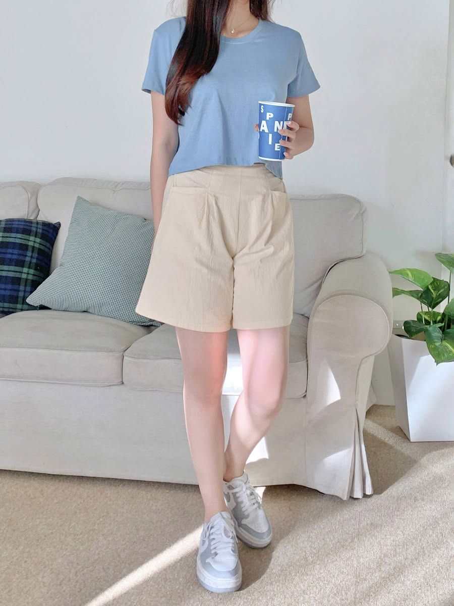 - Quần ngắn nữ lưng sau thun co giãn, chất vải có độ dày vừa phải và thoáng mát.