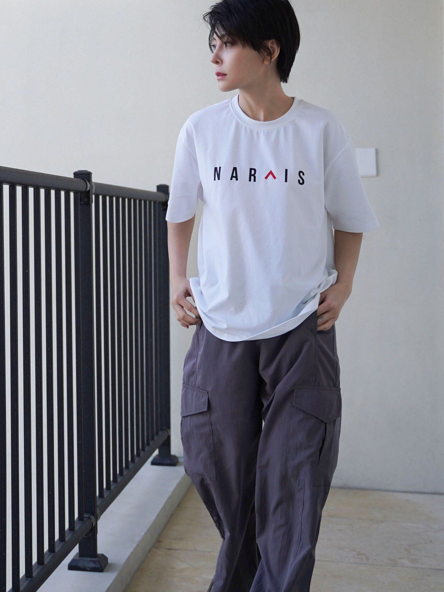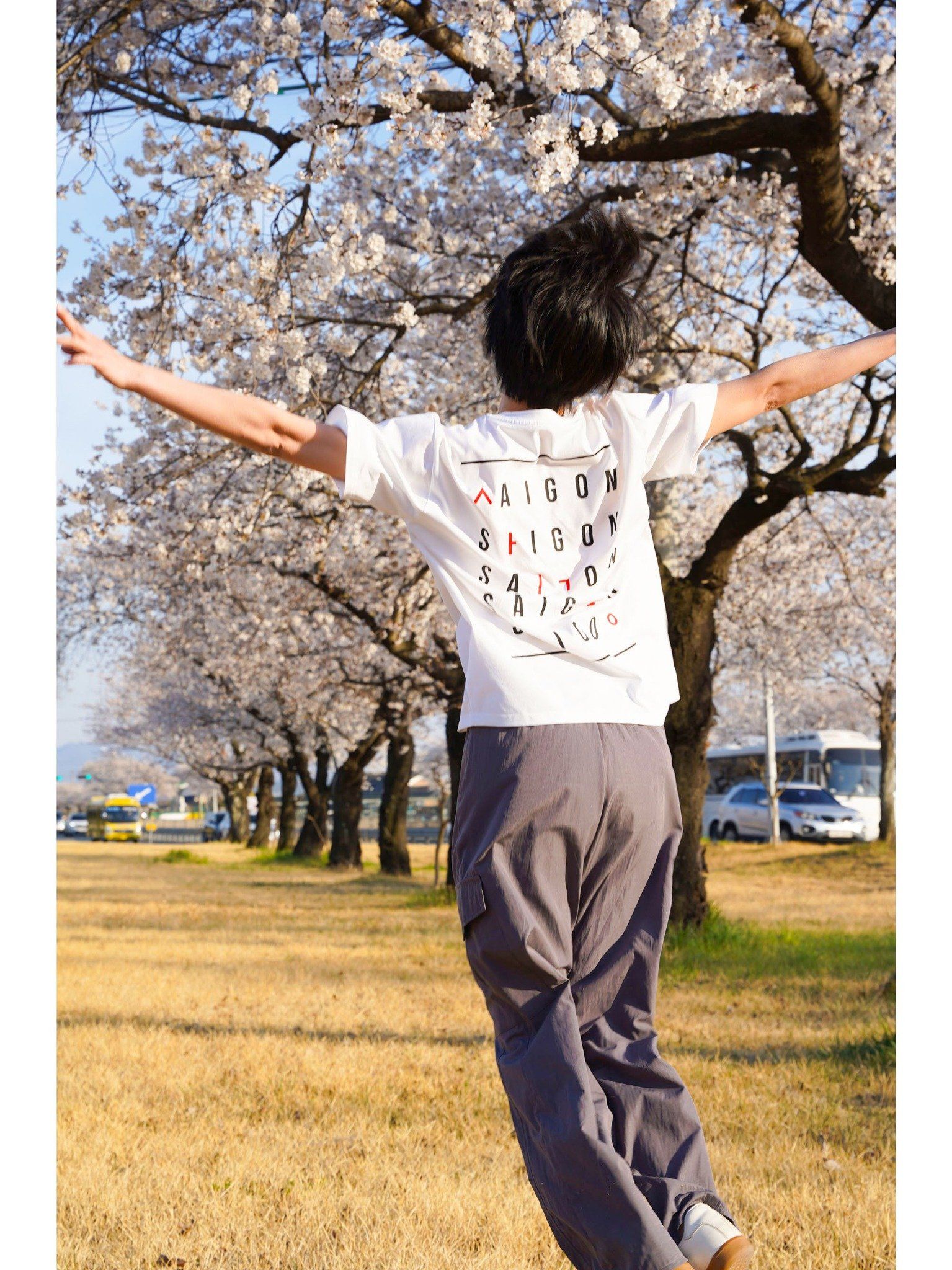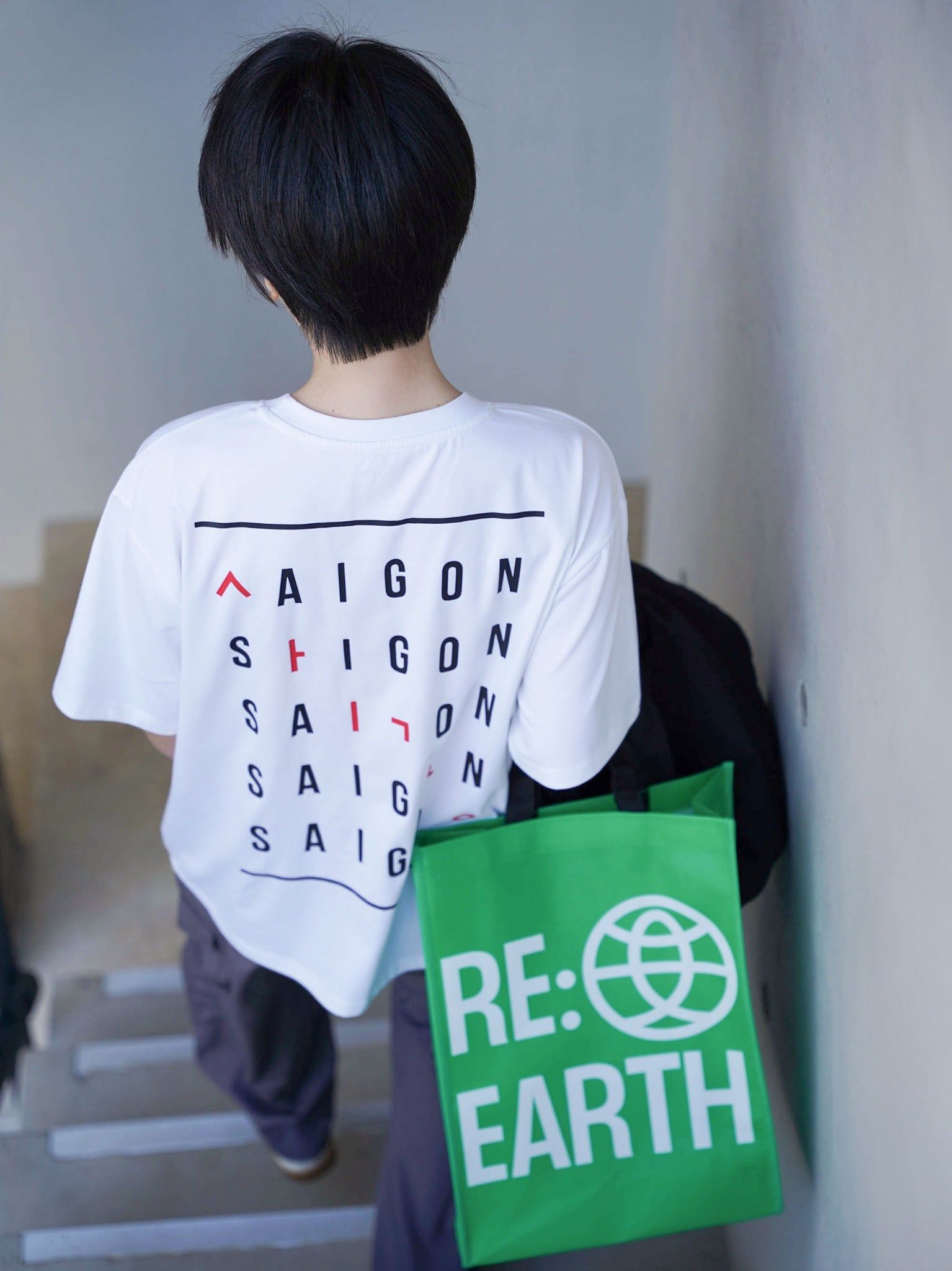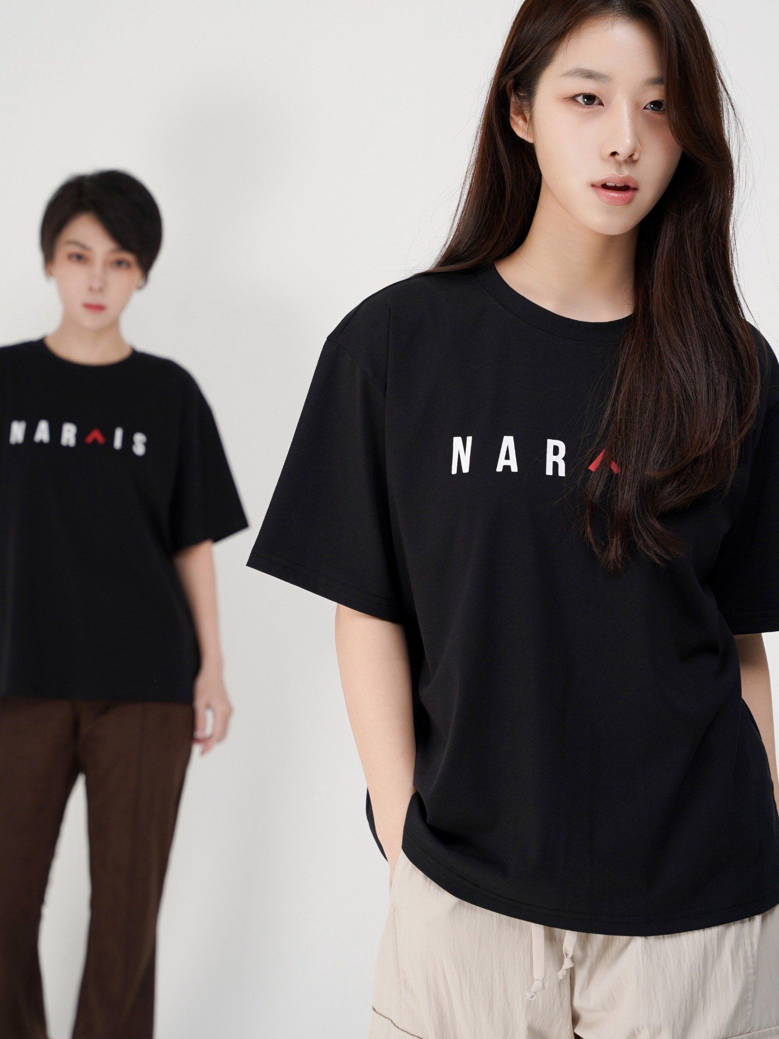 - Áo thun nữ phom rộng in ký tự, chất vải có độ co giãn vừa phải.